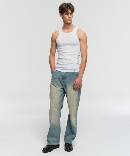 커브드 와이드 코튼 팬츠_베이지 [벨트/키링 선택]
