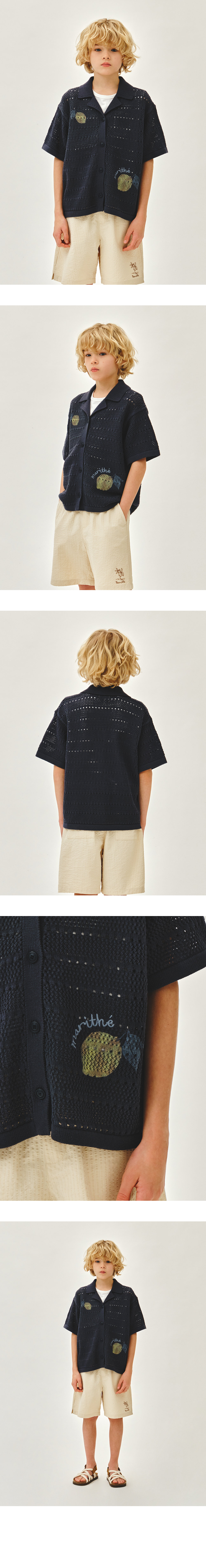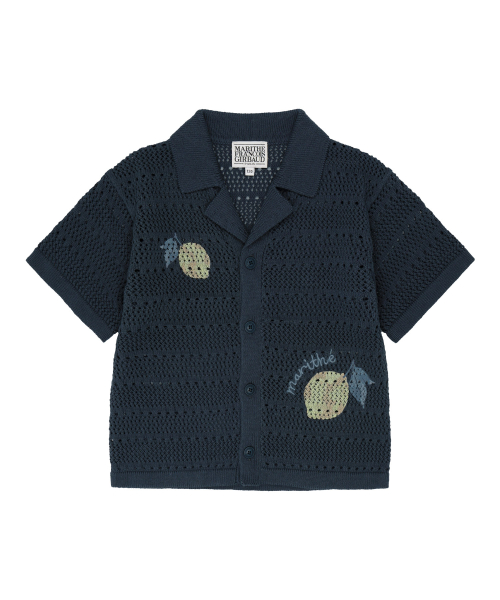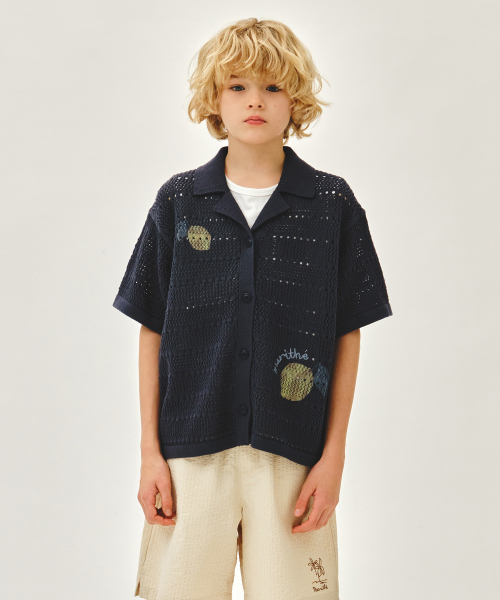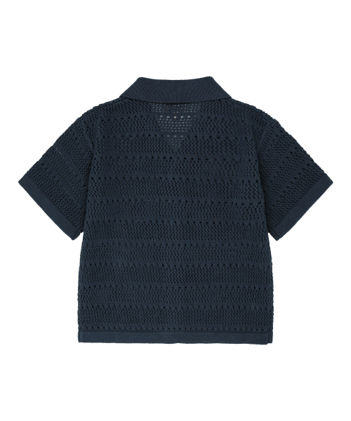 KIDS HALF-SLEEVED KNIT CARDIGAN navy