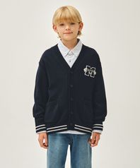 KIDS EMBLEM V-NECK OVERSIZED CARDIGAN navy