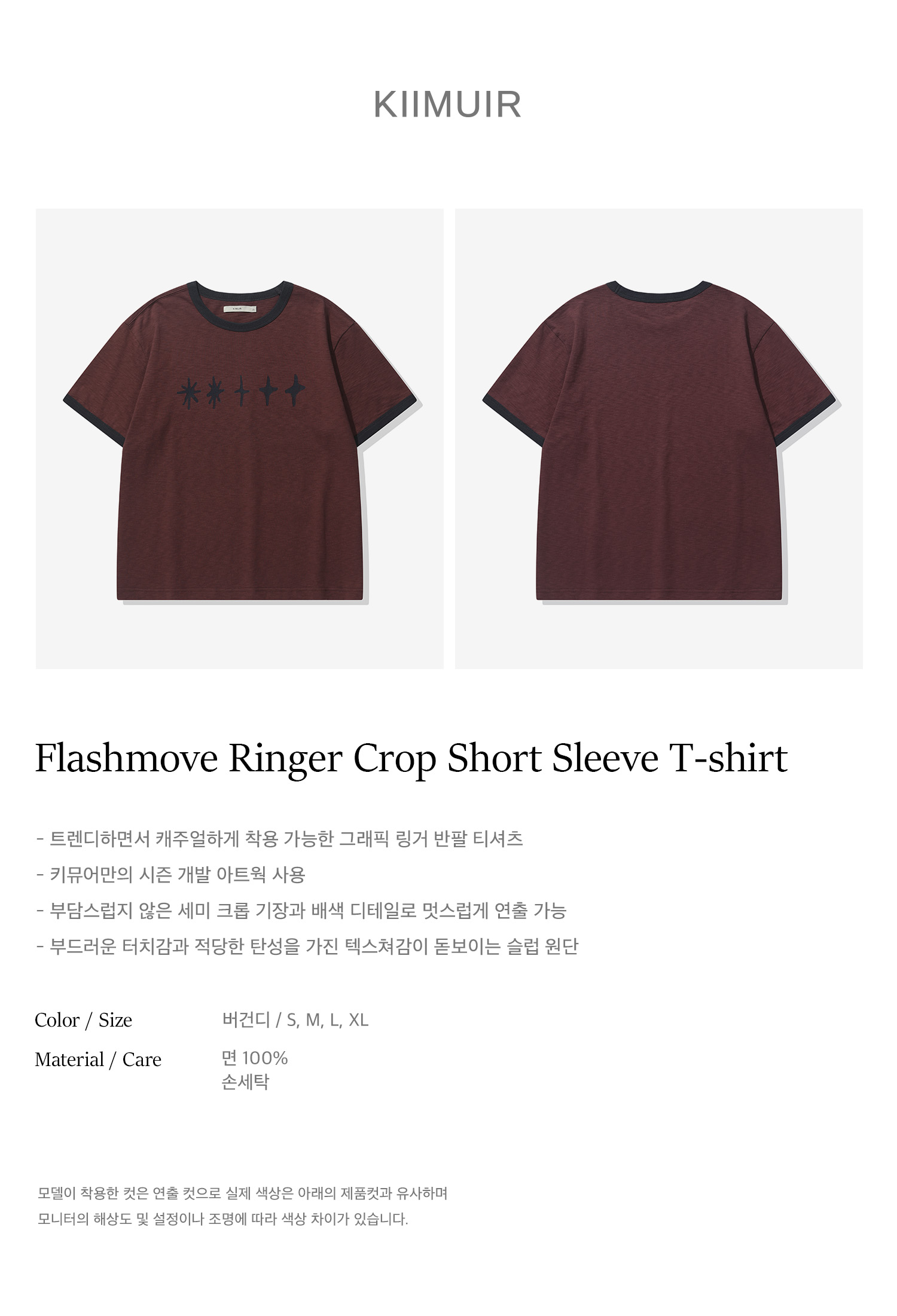 [크롭] 플래시무브 링거 크롭 반팔 티셔츠_버건디