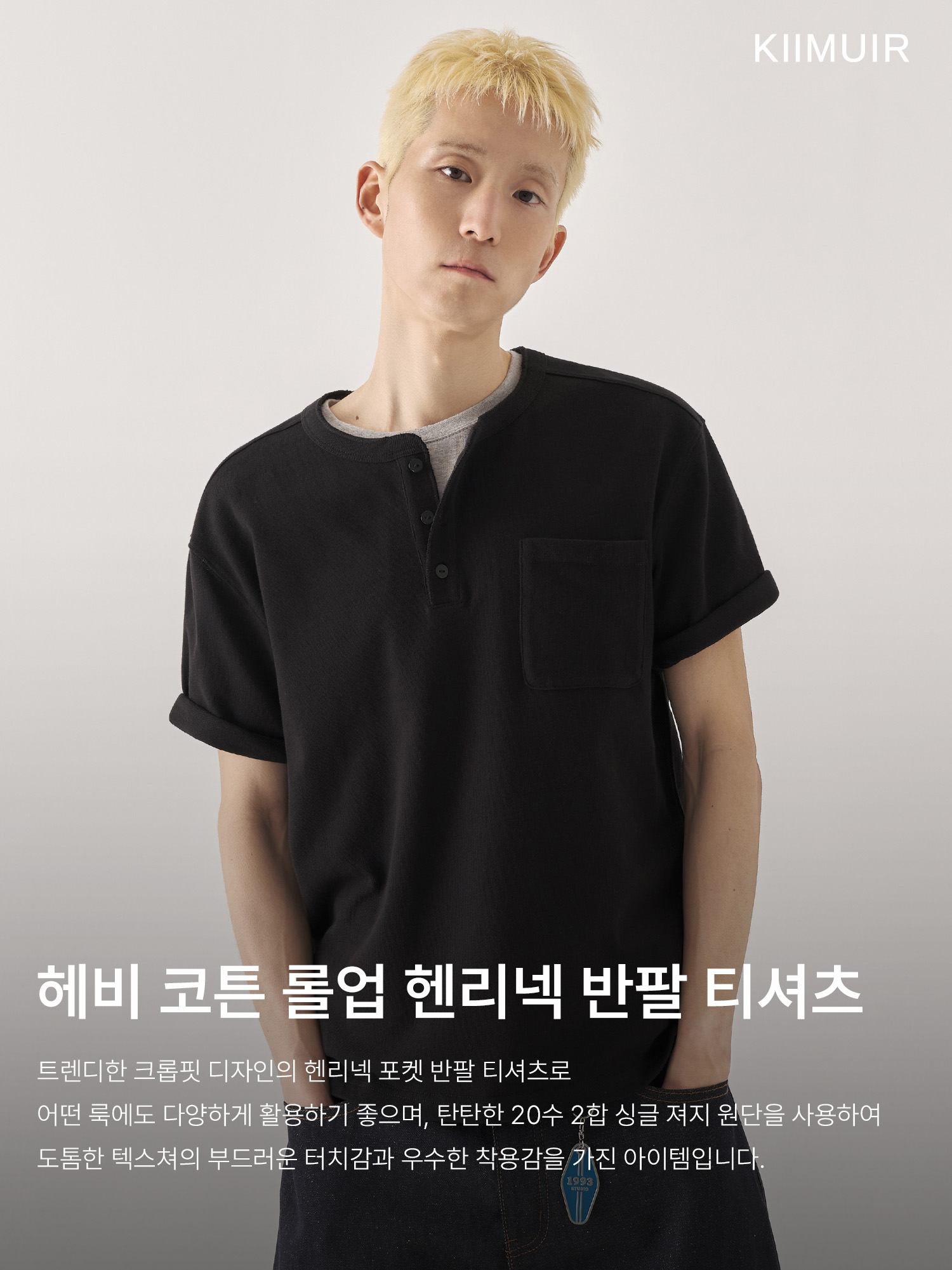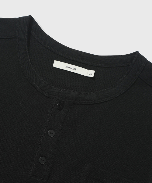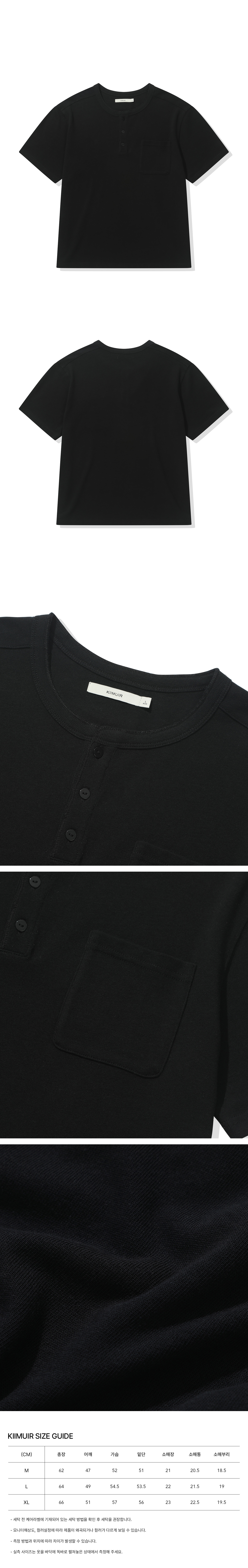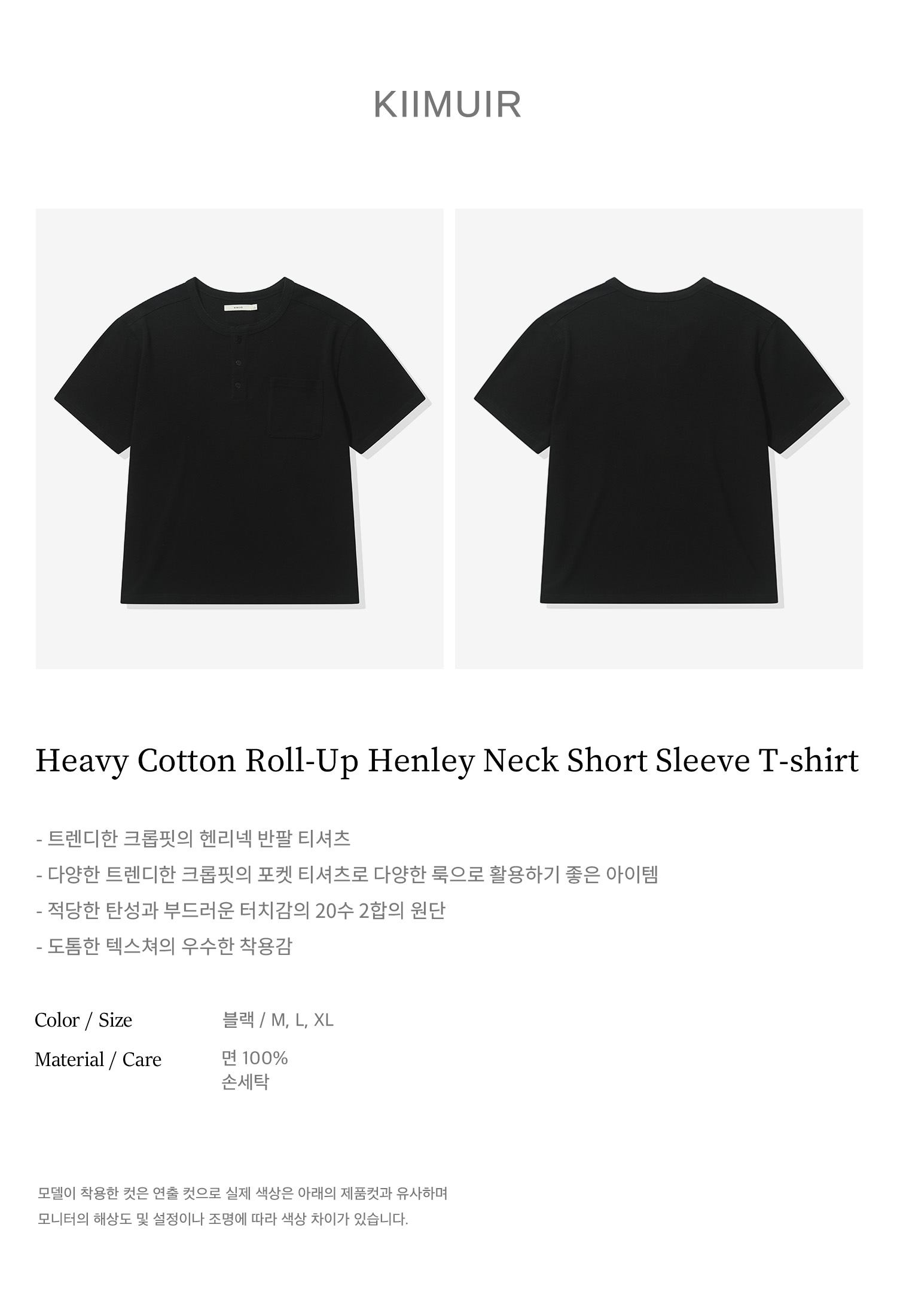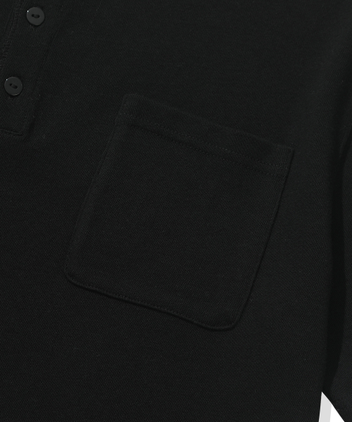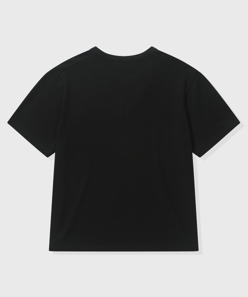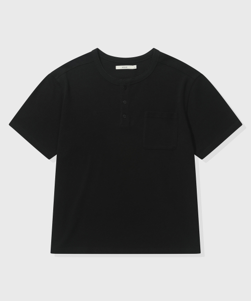 [크롭] 헤비 코튼 롤업 헨리넥 반팔 티셔츠_블랙
