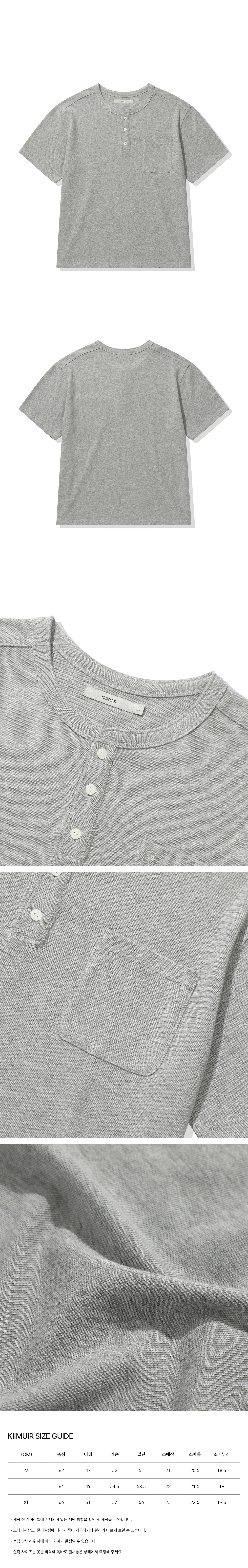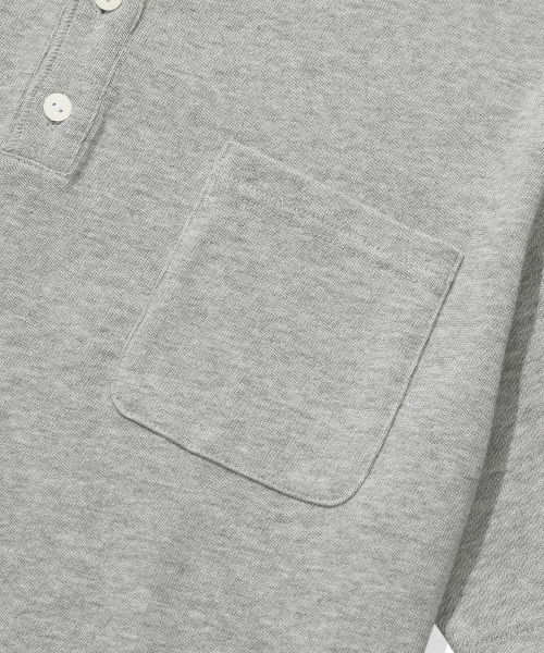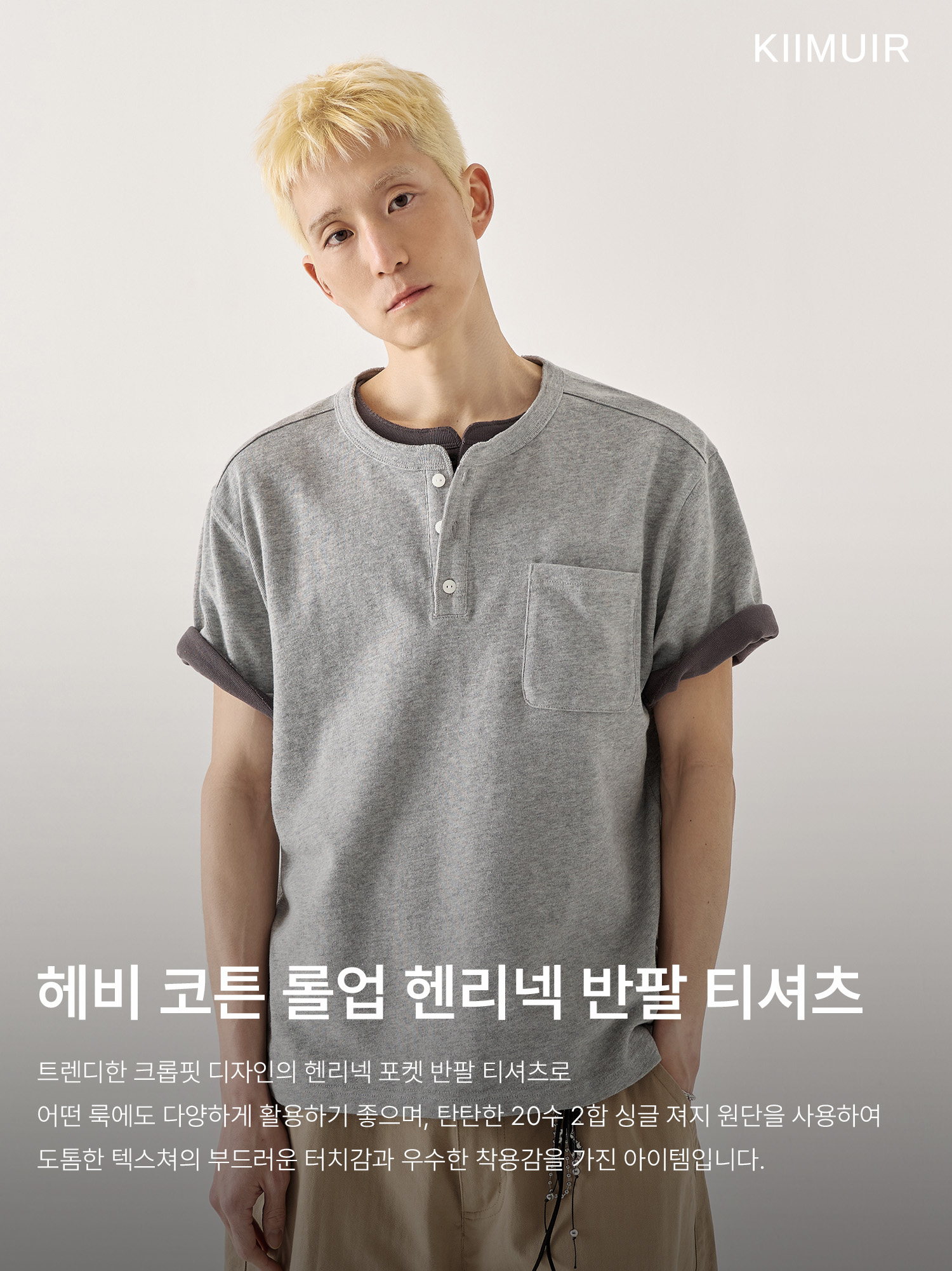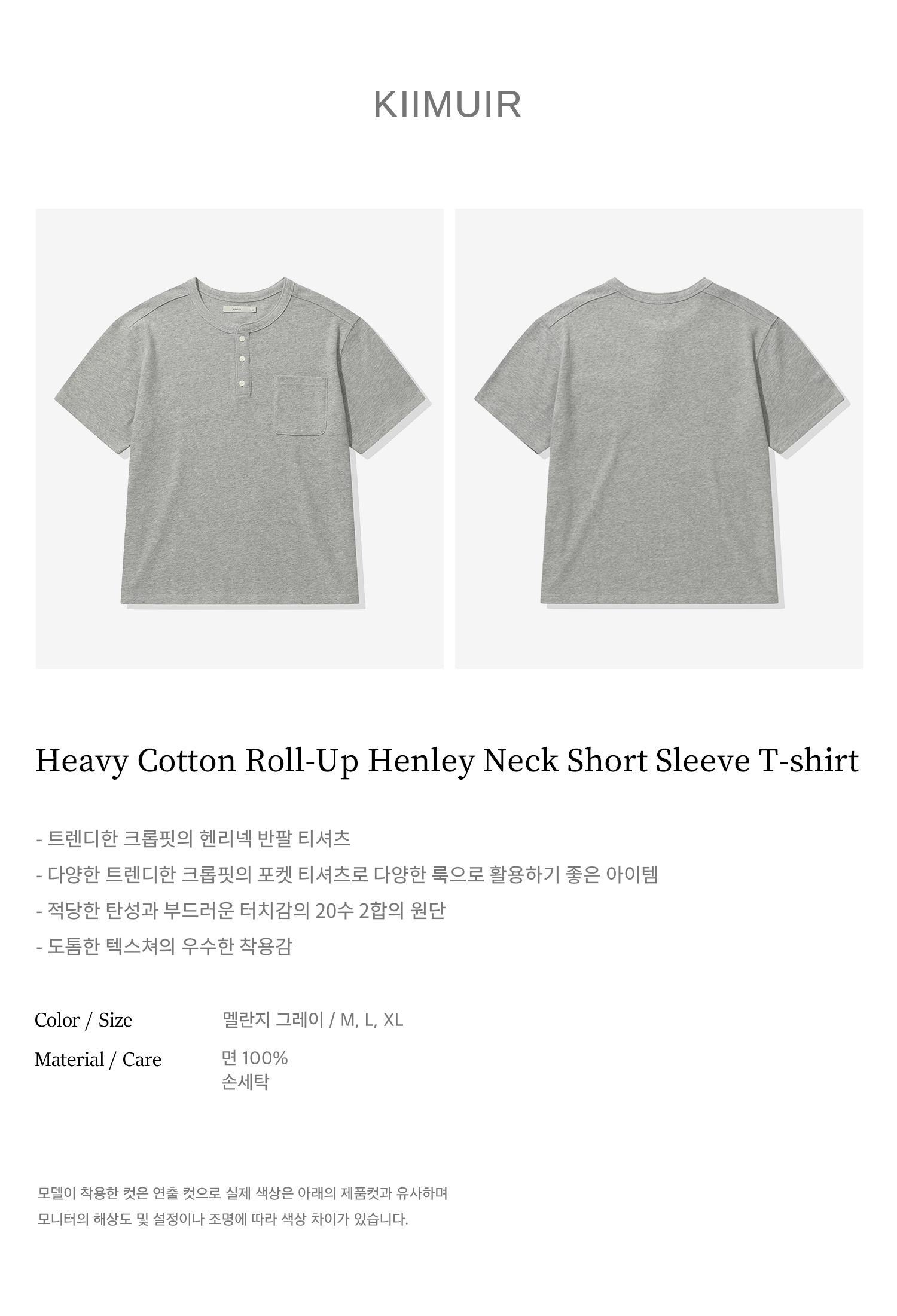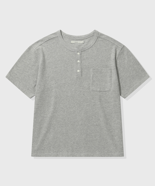 [크롭] 헤비 코튼 롤업 헨리넥 반팔 티셔츠_멜란지 그레이