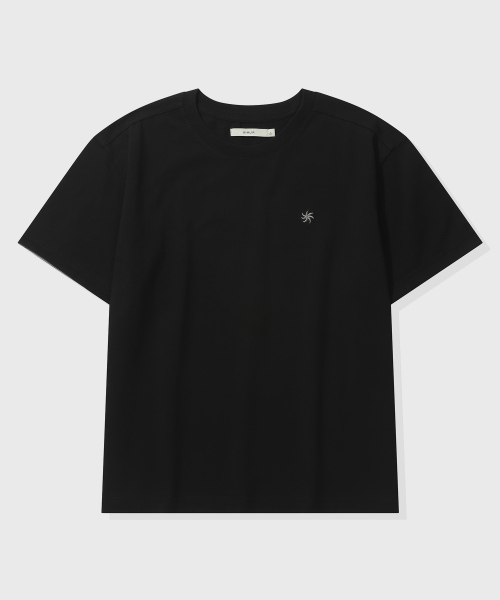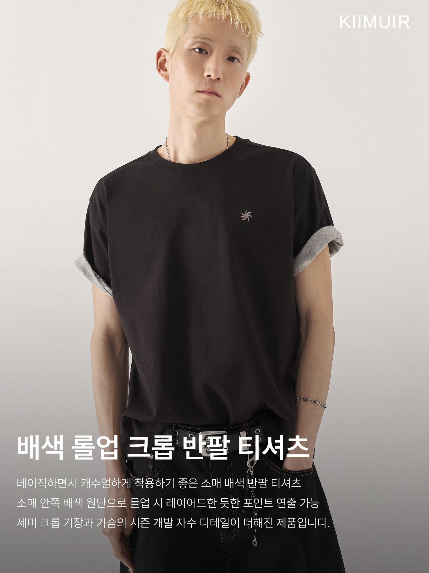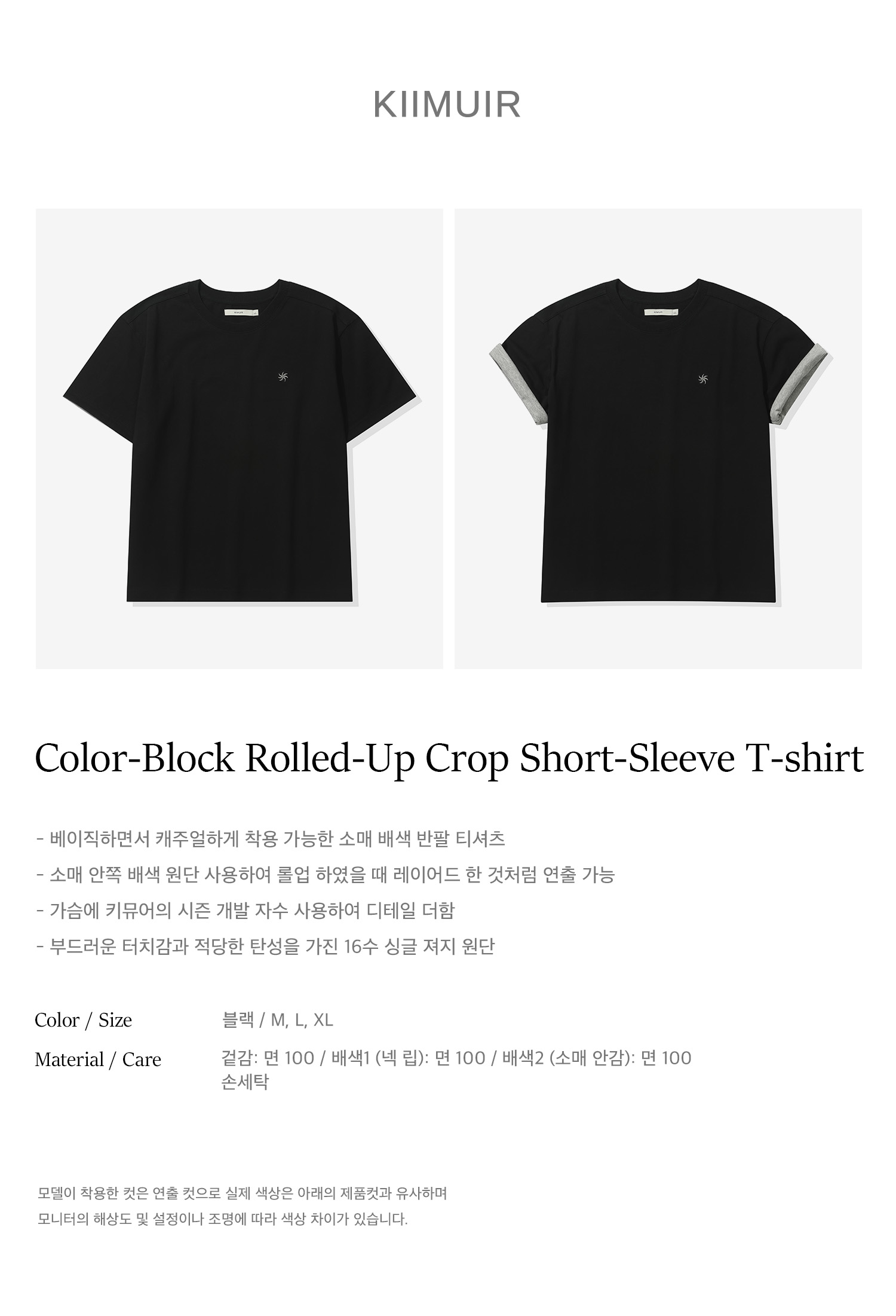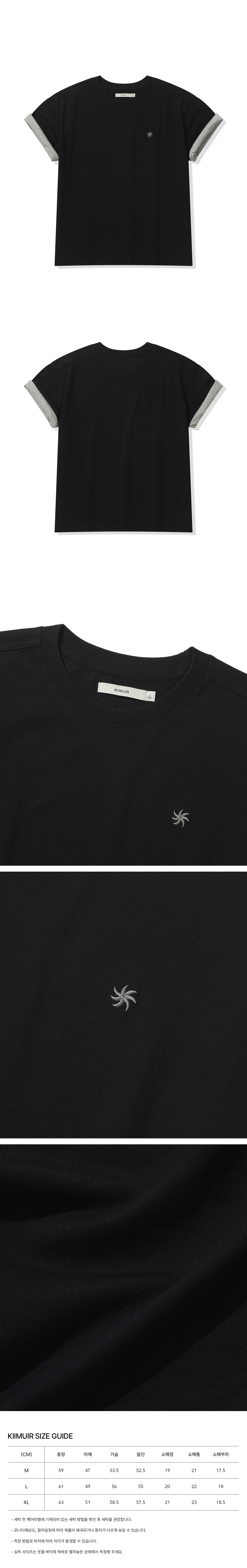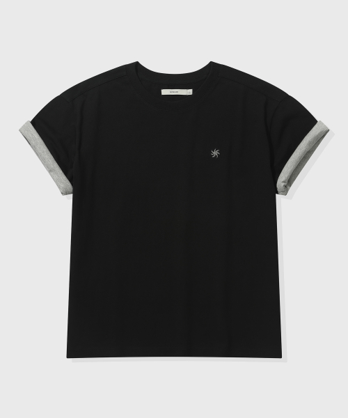 [크롭] 배색 롤업 크롭 반팔 티셔츠_블랙