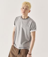 [크롭] 배색 롤업 크롭 반팔 티셔츠_멜란지 그레이