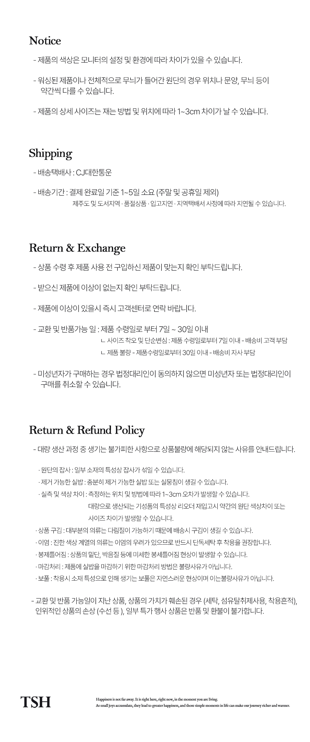 티에스에이치(TSH)는 '소소하지만 확실한 행복'을 모토로, 지친 일상 속 편안함을 전할 수 있는 파자마, 라운지 웨어, 언더웨어를 비롯한 다양한 라이프스타일 아이템을 선보이고 있습니다.