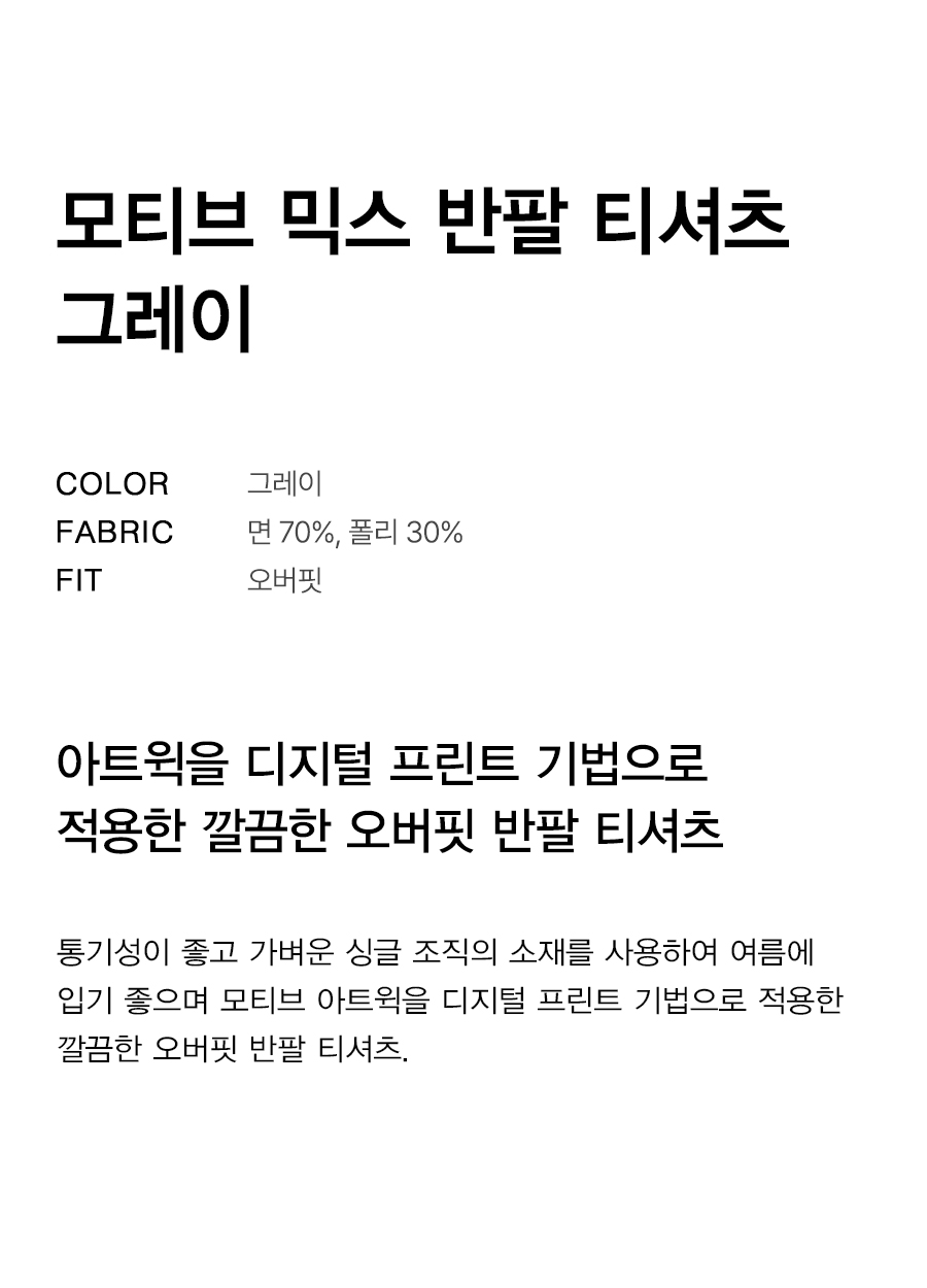 모티브 믹스 반팔 티셔츠 그레이 ANA2TR05AGE