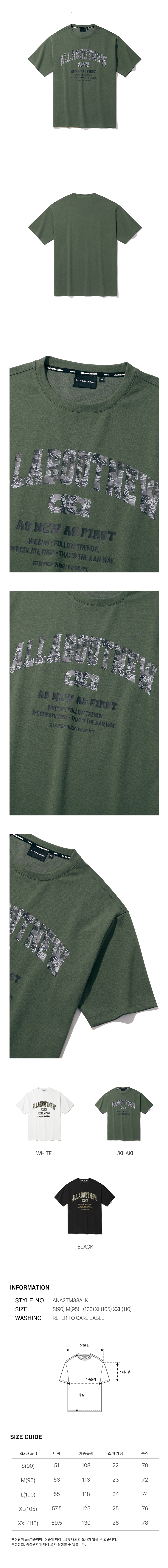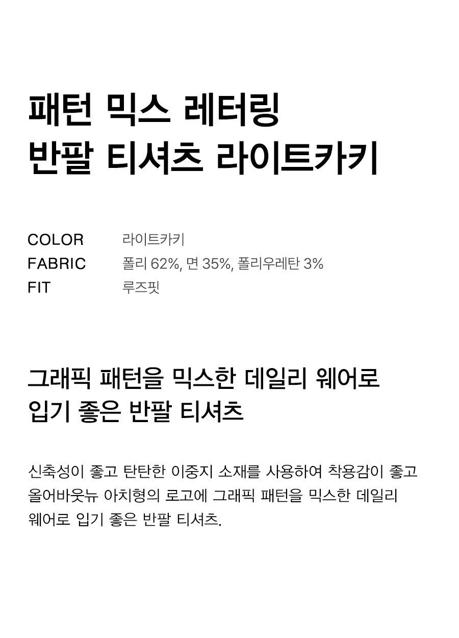 패턴 믹스 레터링 반팔 티셔츠 L카키 ANA2TM33ALK