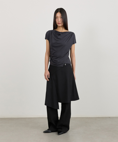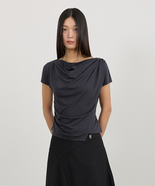 컷아웃 사이드 스트링 크롭 티셔츠 BK