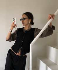 LACE BUTTON SLEEVELESS (BLACK)