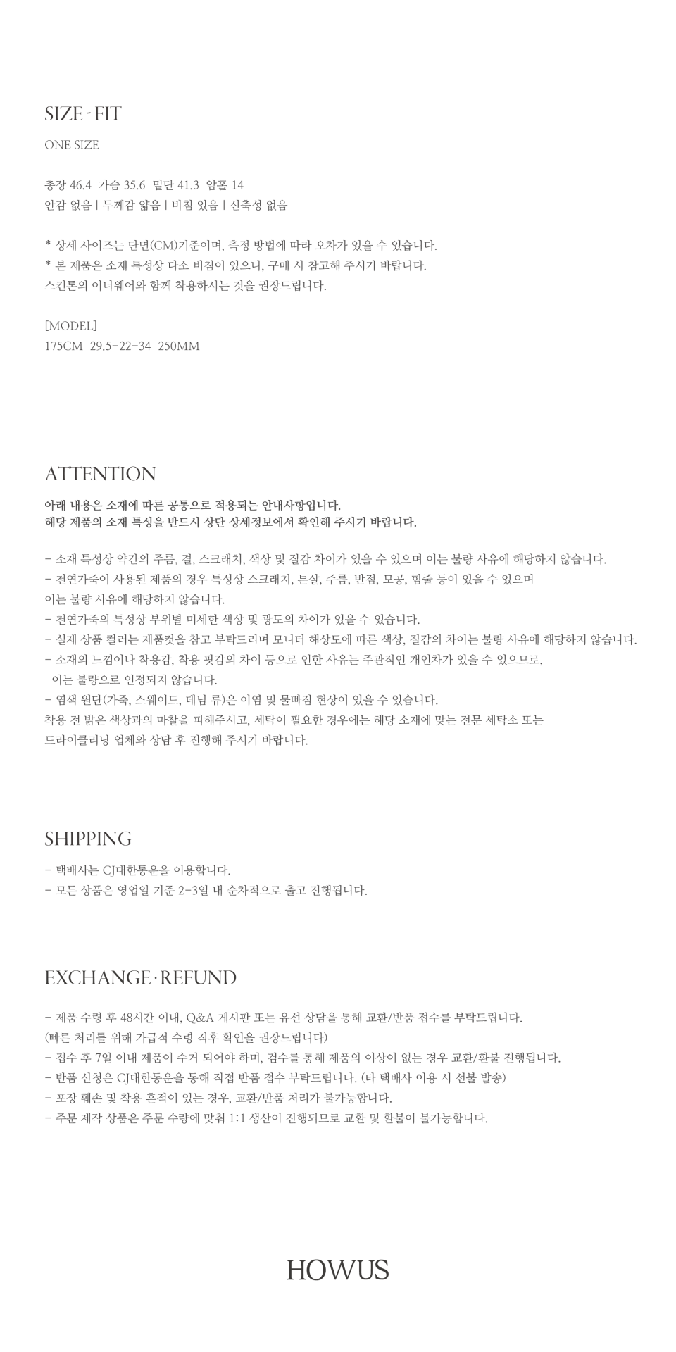 호와스(HOWUS)는 여성의 아름다움에 대한 고찰에서 출발해 HOUSE와 WOMAN의 의미 있는 공존과 결합을 추구하는 브랜드입니다.