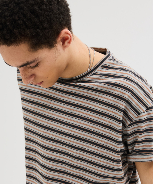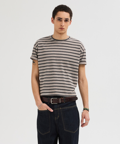 에센셜 스트라이프 크롭 티셔츠 [차콜]
