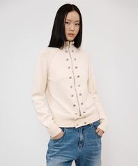 HIGH-NECK STUD KNIT OUTER IN IVORY