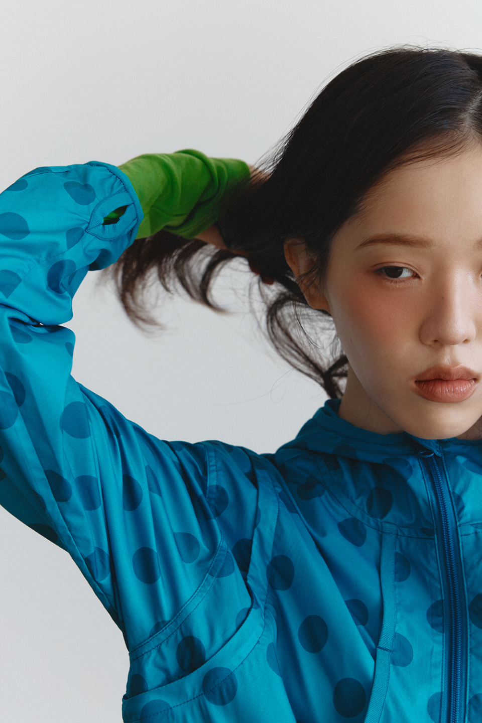 - 도트 패턴이 돋보이는 후드 윈드브레이커