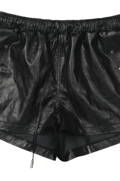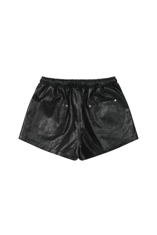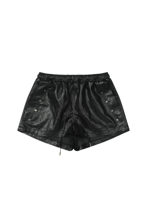 STUD POINT FAUX LEATHER SHORTS IN BLACK