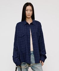 DOUBLE CHECKERED OVERFIT SHIRT IN NAVY