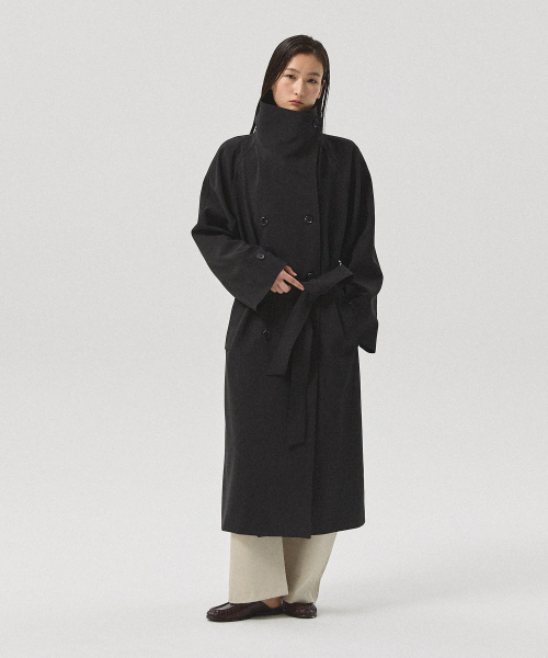 Le Mur Belted Over Trench Coat_BLACK