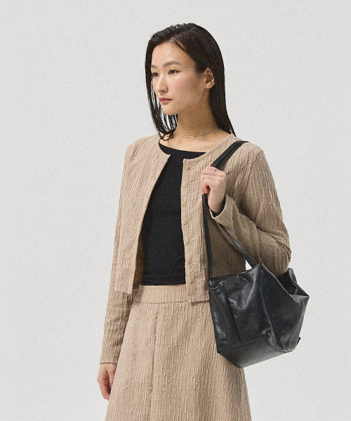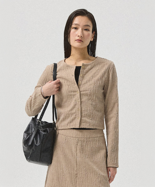 Selon Crinkle Cropped Cardigan_BEIGE