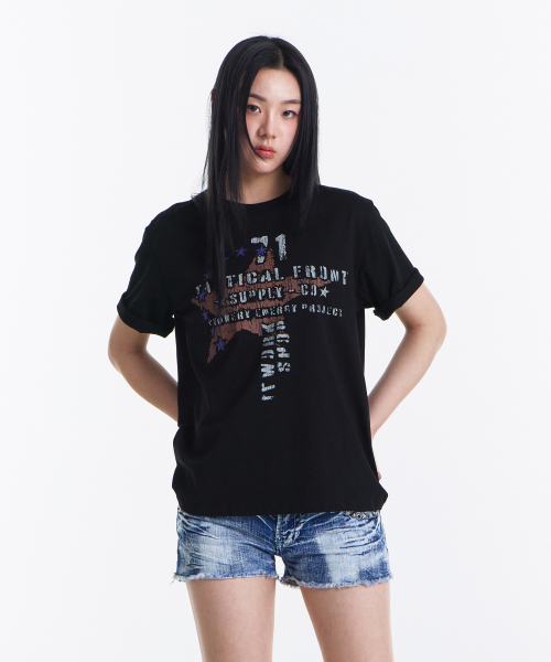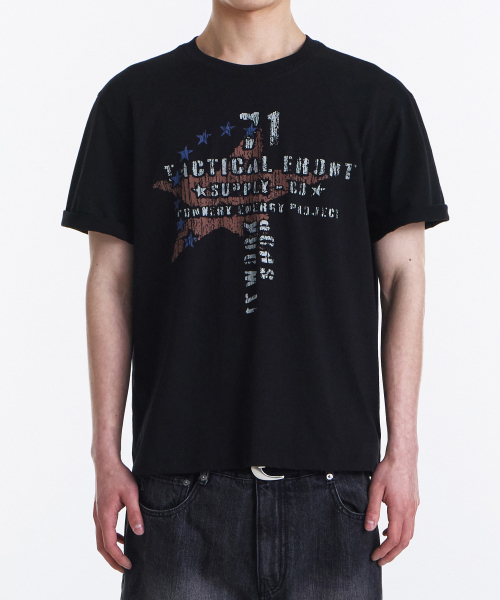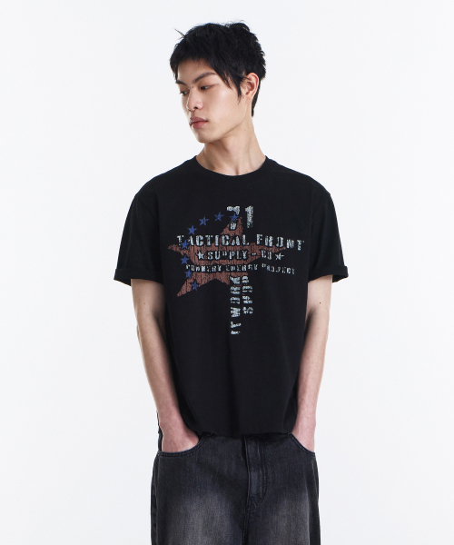 - 전면 빈티지한 3컬러 배색의 별&타이포 아트웍 그래픽