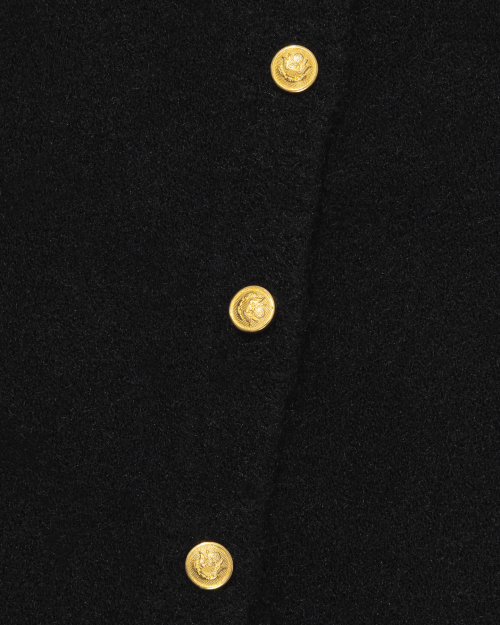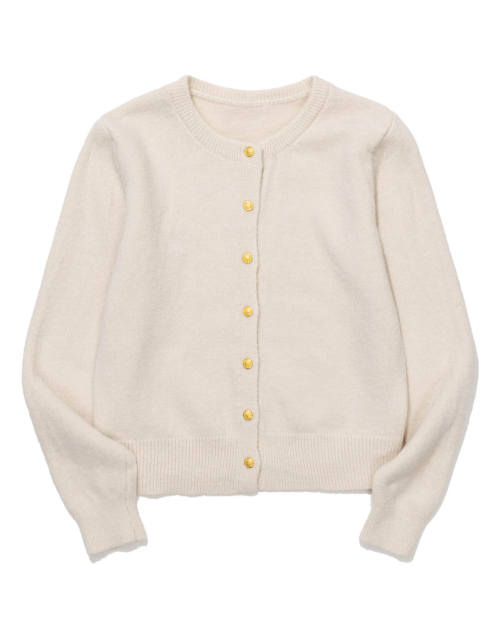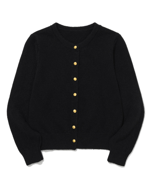 Gold Button Round-Neck Knit Cardigan (BLACK)