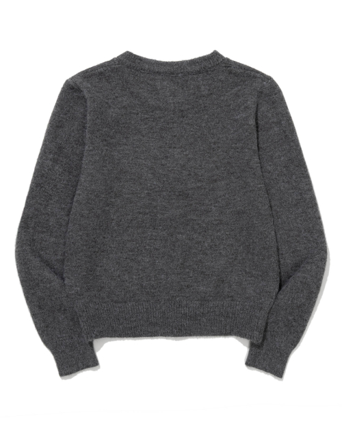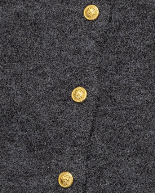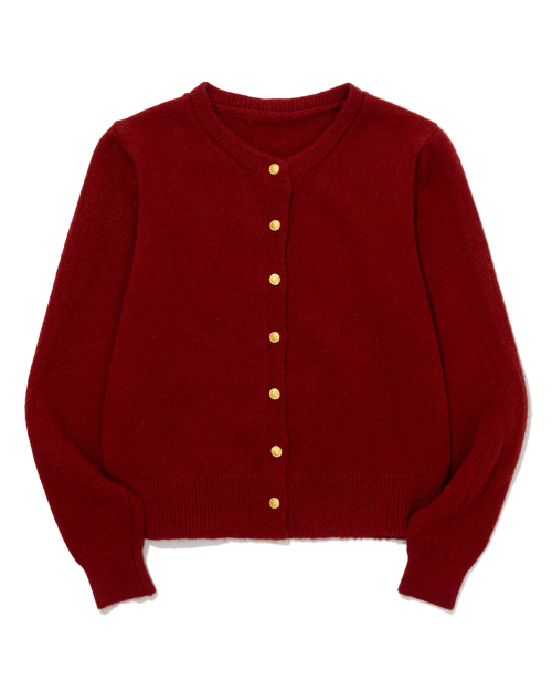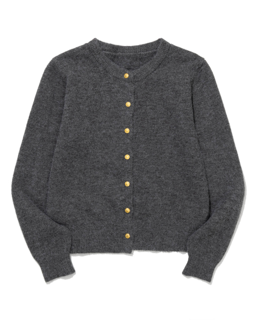Gold Button Round-Neck Knit Cardigan (CHARCOAL)
