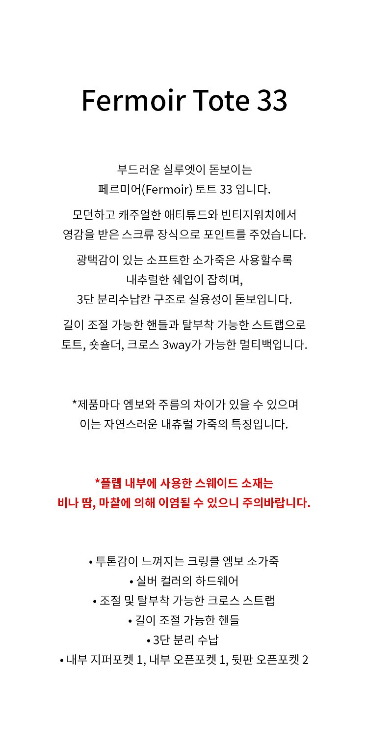 * 소재:천연가죽(소) / 폴리에스터 100%(안감)