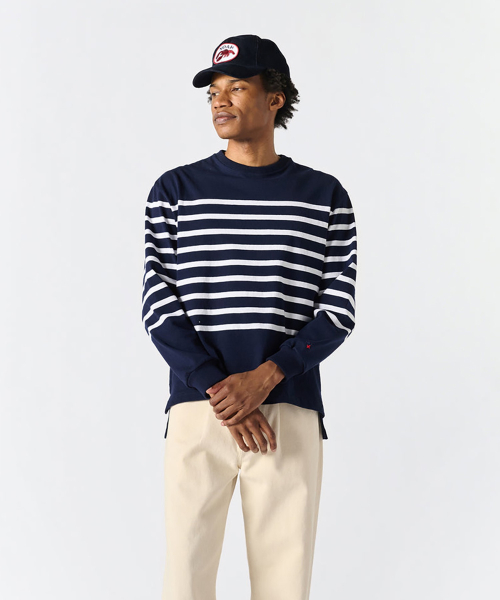 (U) 오버사이즈드 스트라이프 럭비 탑 네이비 화이트 OVERSIZED STRIPED RUGBY TOP NAVY/WHITE