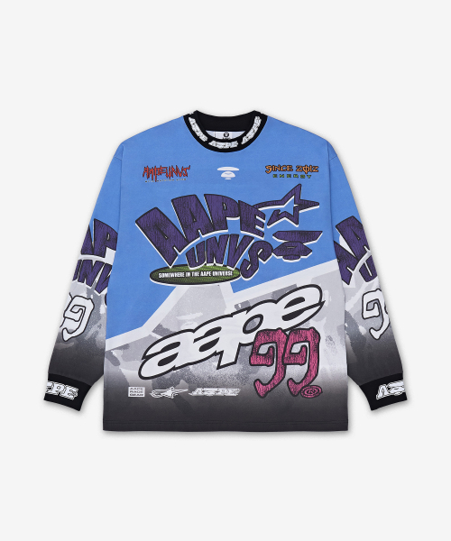 유니버스 레이싱 그래픽 긴팔 티셔츠 - 블루:퍼플 / AAPLTM1862XXQBLS