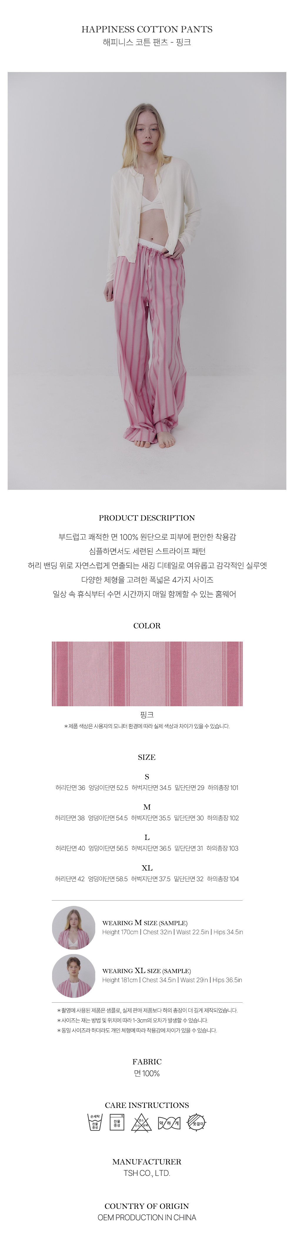해피니스 코튼 팬츠 - 핑크