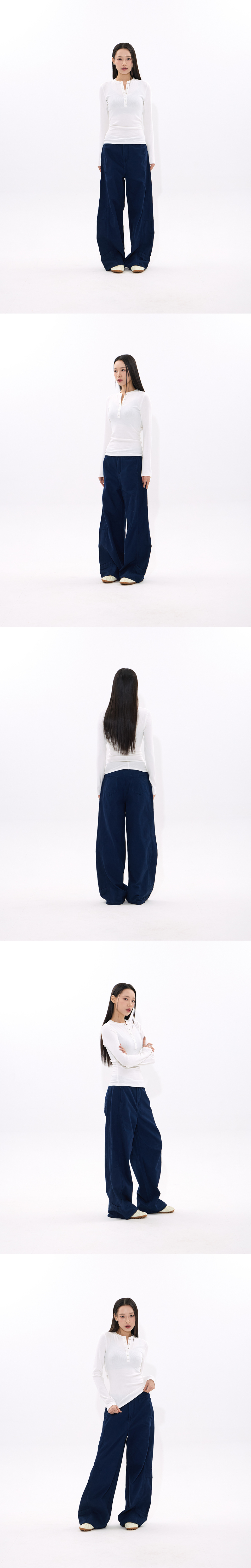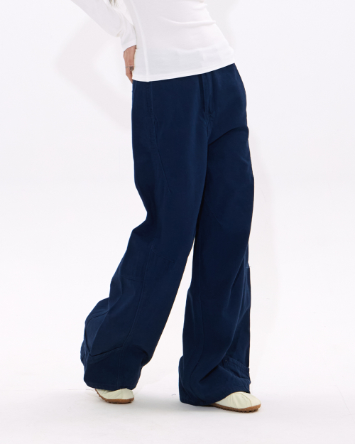 Curved Wide-Leg Work Pants (NAVY)
