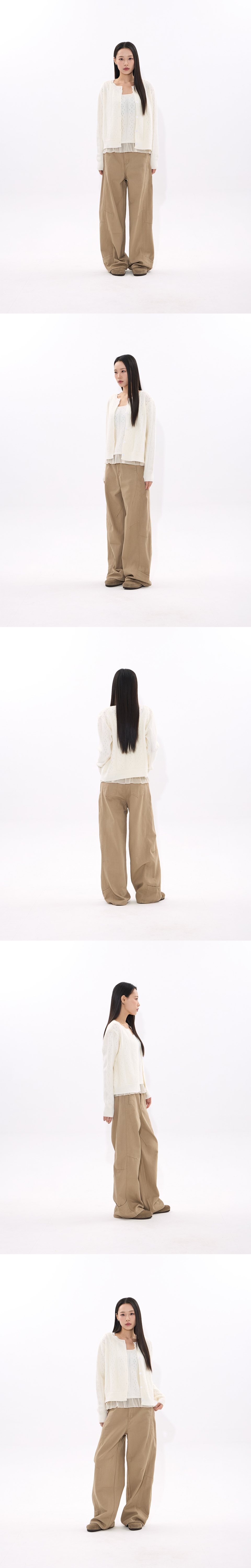 Curved Wide-Leg Work Pants (BEIGE)