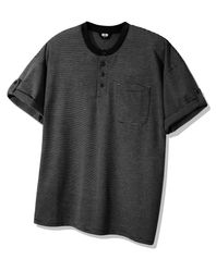 씬 스트라이프 롤 업 포켓 헨리넥 반팔 티셔츠_블랙
