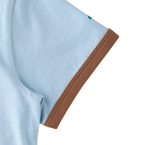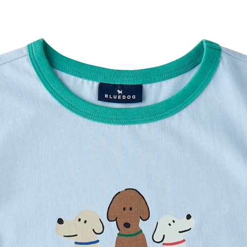 도기프렌즈링거반팔티입니다.30S 싱글에 엔자임 가공하여 표면이 매끄럽고 터치감이 부드럽습니다.귀여운 강아지 나염과, 소매, 애리 컬러 매칭이 포인트입니다.
