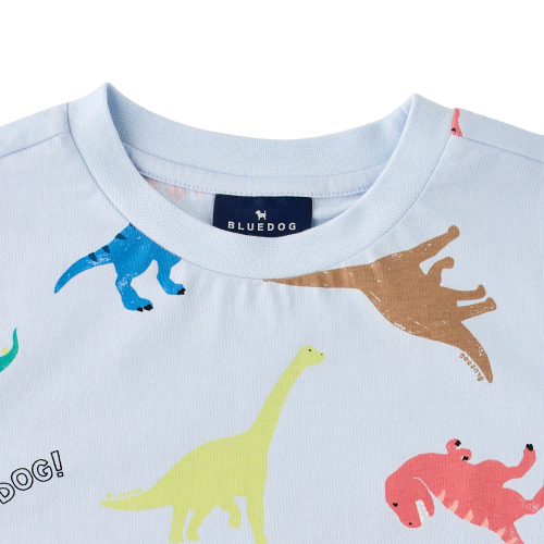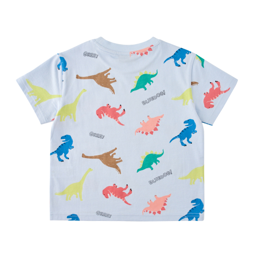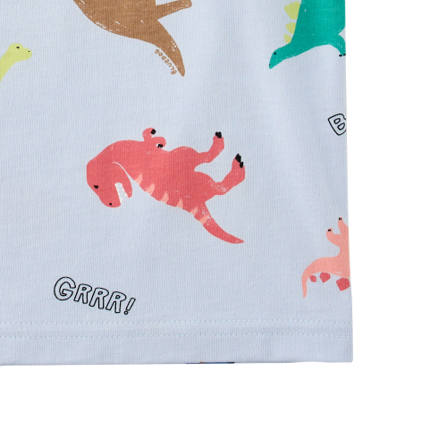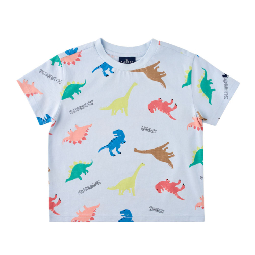 다이노패턴반팔티셔츠 입니다.30S 싱글에 엔자임 가공하여 표면이 매끄럽고 터치감이 부드럽습니다.아이들이 좋아한느 공룡 전판이 포인트입니다