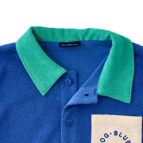 오픈형 테리 카라티셔츠입니다.부드럽고 내구성이 뛰어난 TERRY소재를 사용하였습니다.카라와 포켓 컬러매칭이 포인트 입니다. 링거 팬츠와 코디하면 캐주얼한 바캉스 룩이 완성됩니다.