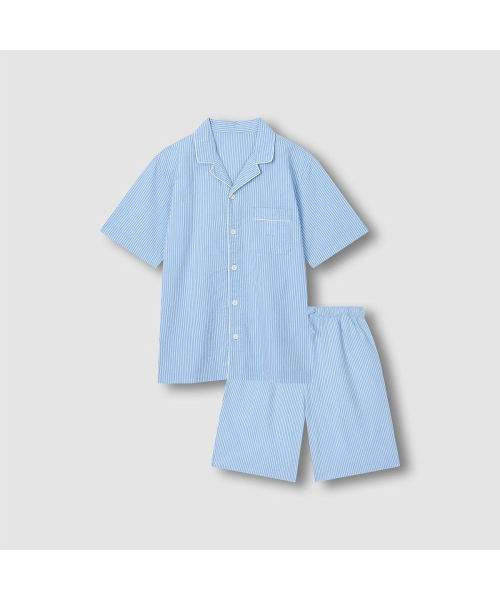 남 시어서커 5부 파자마 세트_다크 블루