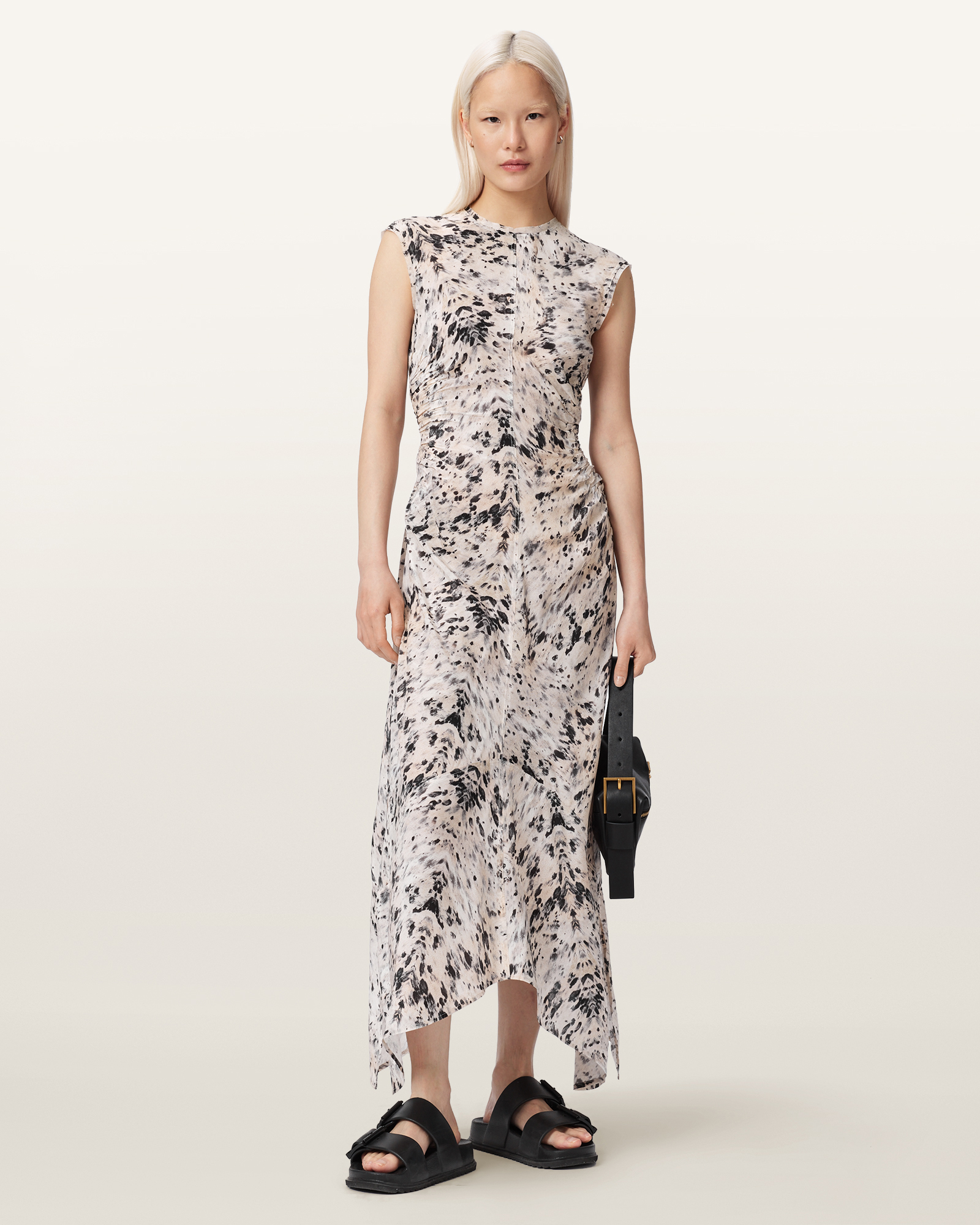 개성 있는 디테일이 돋보이는 아이템입니다. 레귤러 핏과 맥시 기장으로 제작되었으며, 비대칭 헴라인과 로우 엣지, 콘트라스트 스티치가 포인트가 됩니다. 가죽 샌들과 매치해 편안한 무드를 연출하거나, 하이힐과 함께 드라마틱한 스타일링을 완성할 수 있습니다.