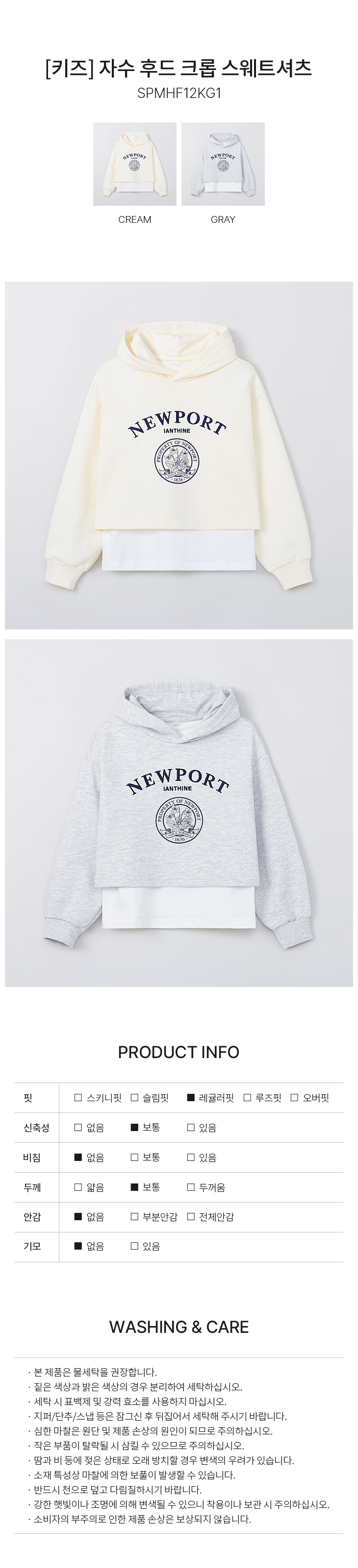 [키즈]자수 후드 크롭 스웨트셔츠_SPMHF12KG1