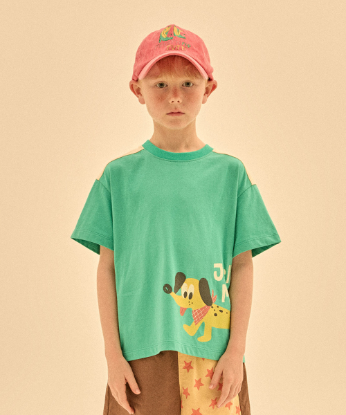 도그 사이드 숏 슬리브 티셔츠_그린