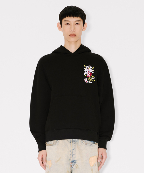 남성 겐조 와일드 타이거 자수 클래식 블랙 후드_K265AMW303BKX