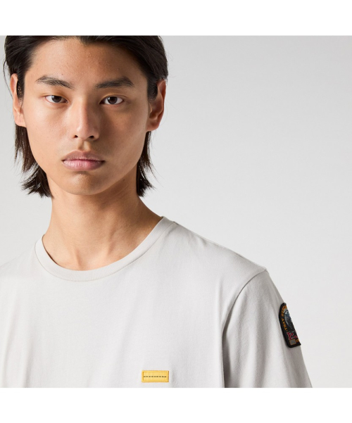 - 가슴에 위치한 PARAJUMPERS의 시그니처 옐로우 테이프