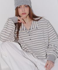 스트라이프 하프집업 버튼 스웻셔츠 그레이