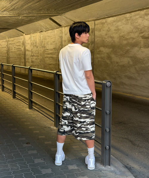크롭 무지 오버핏 반팔 티셔츠 [멜란지 그레이]