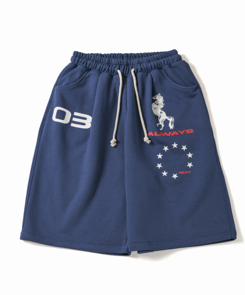 Horse One Tuck Bermuda Pants Blue