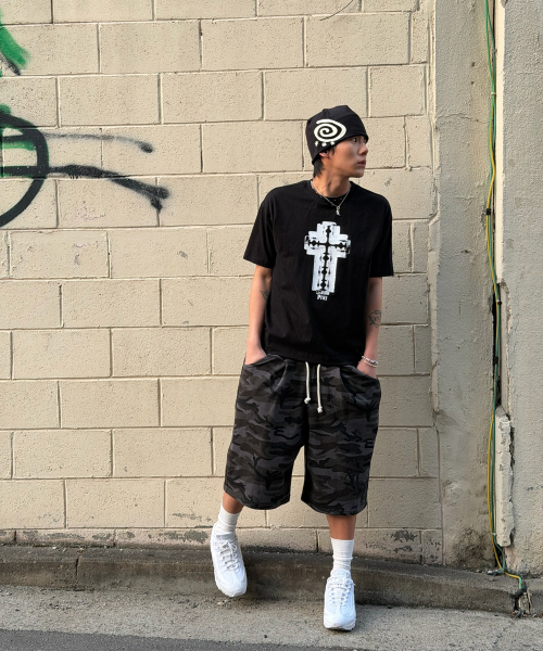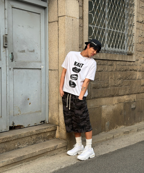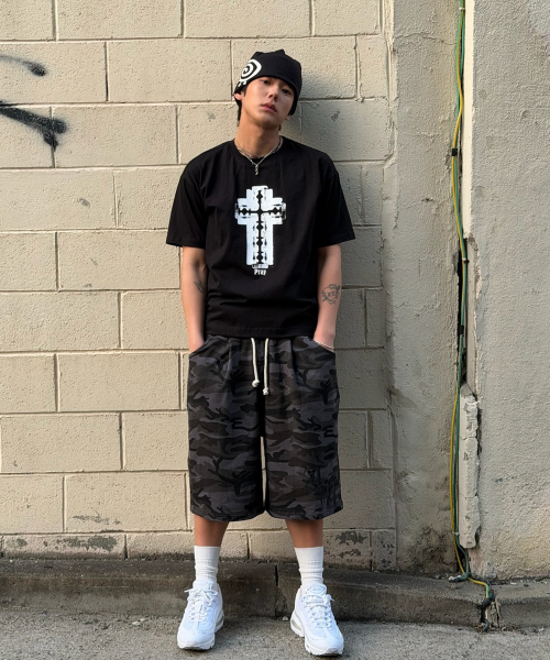 [크롭] 배색 롤업 크롭 반팔 티셔츠_버건디