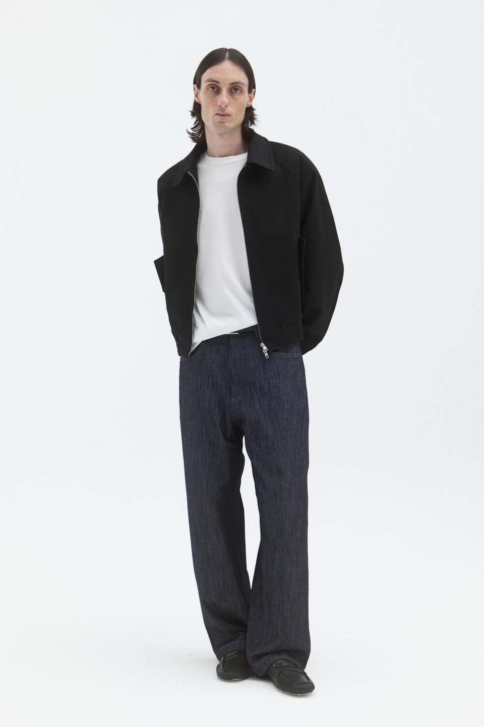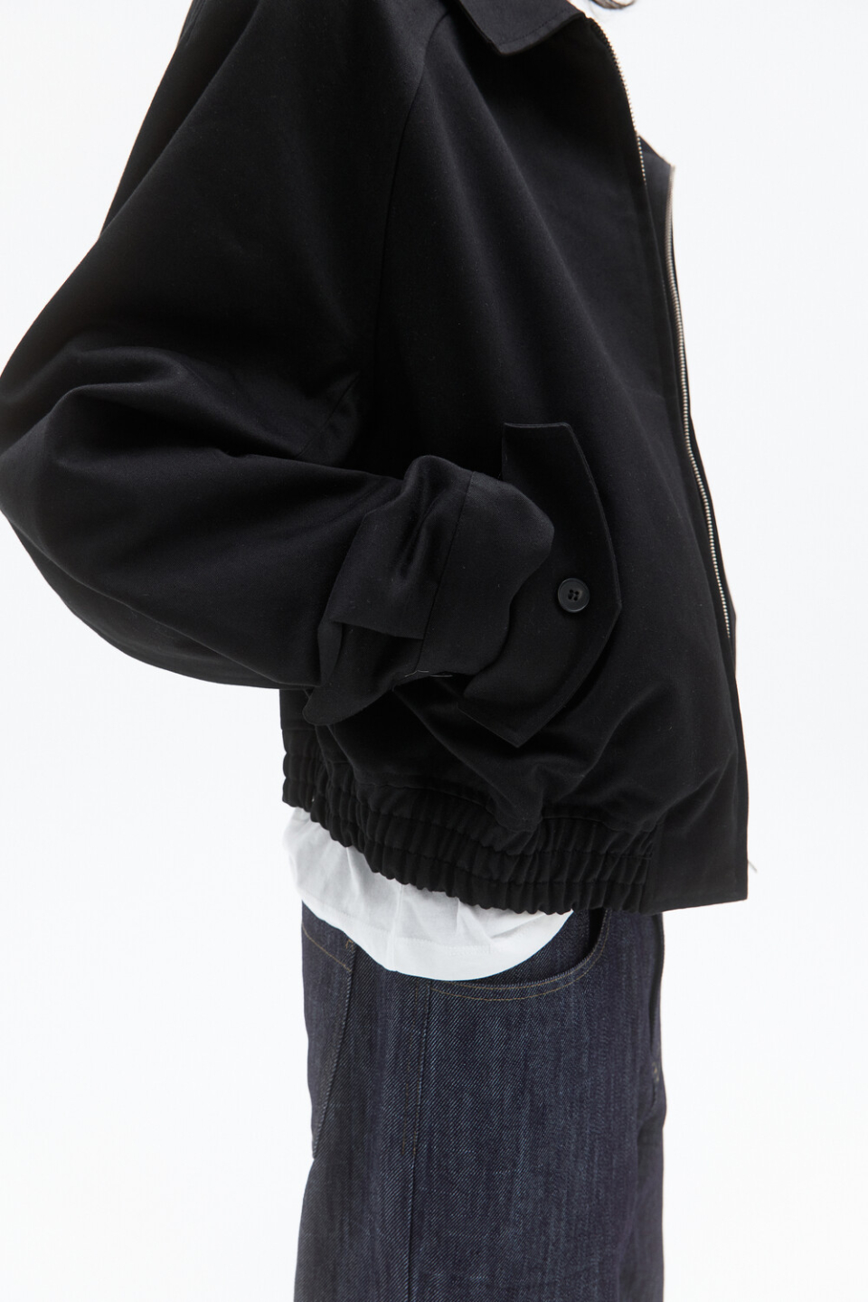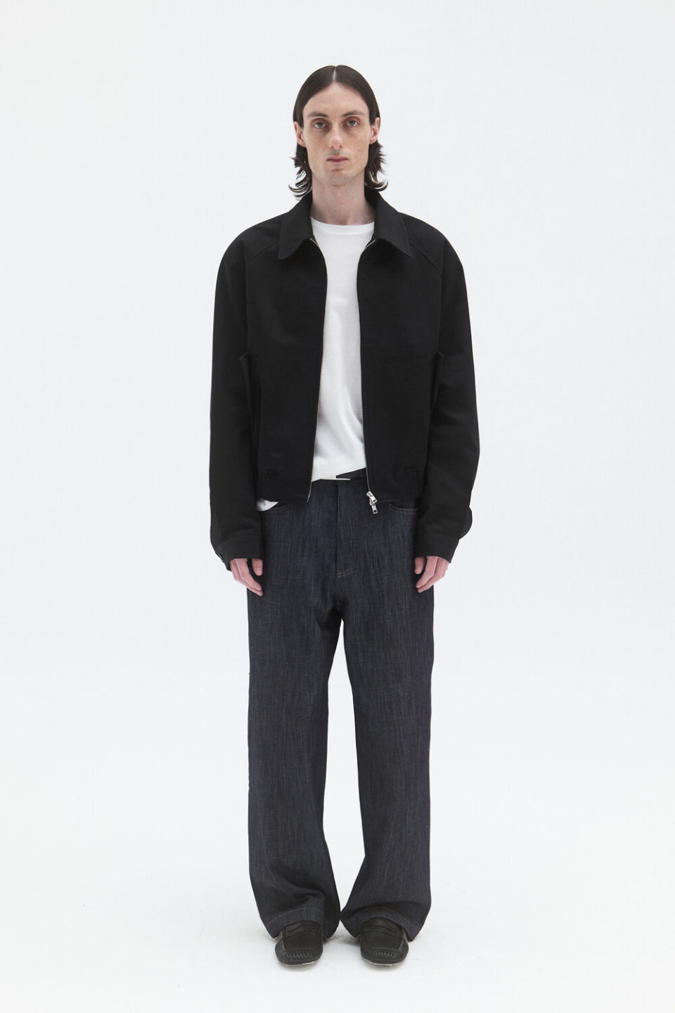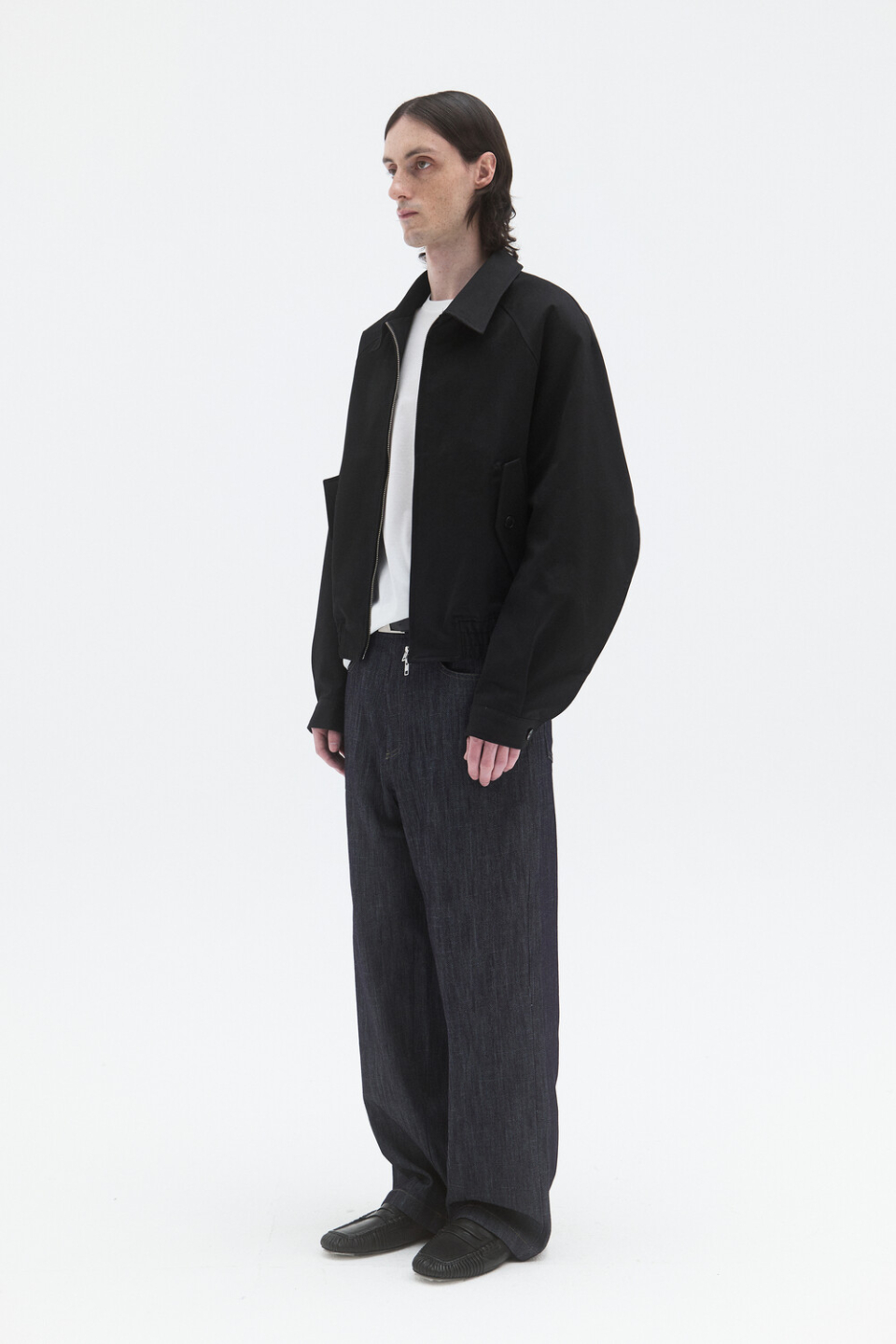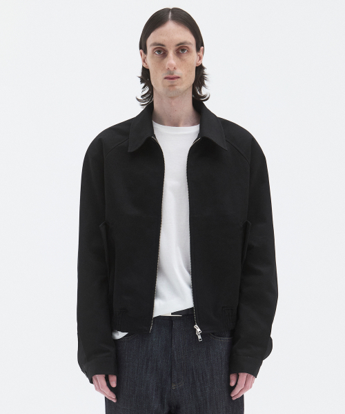 -어깨 실루엣과 크롭한 기장감이 돋보이는 코튼 블루종