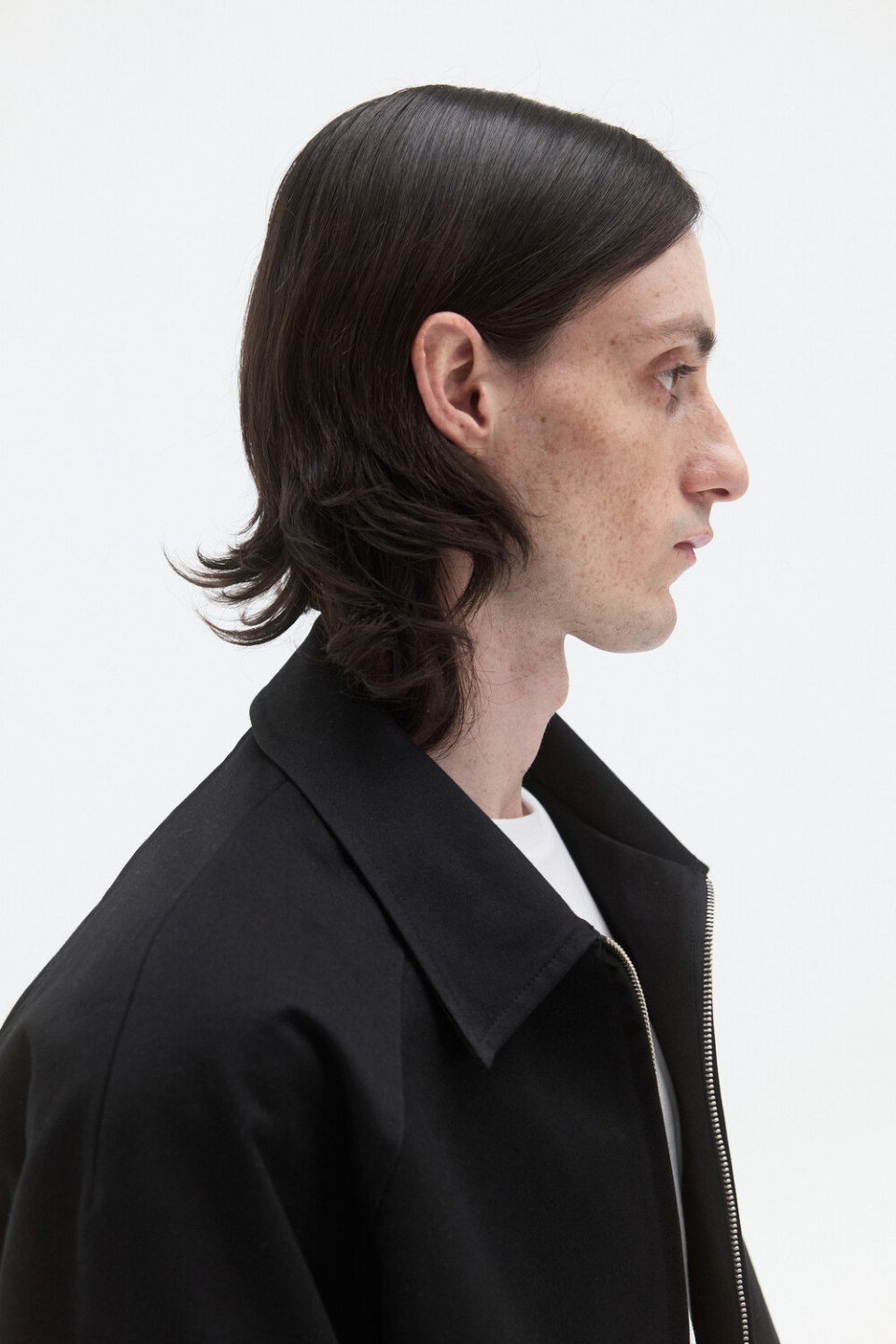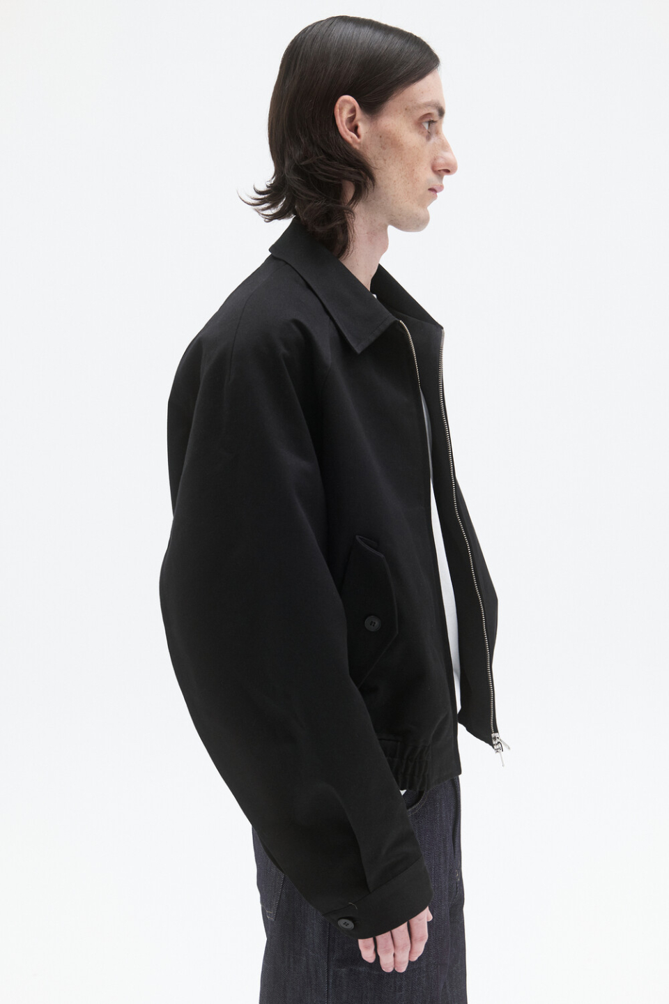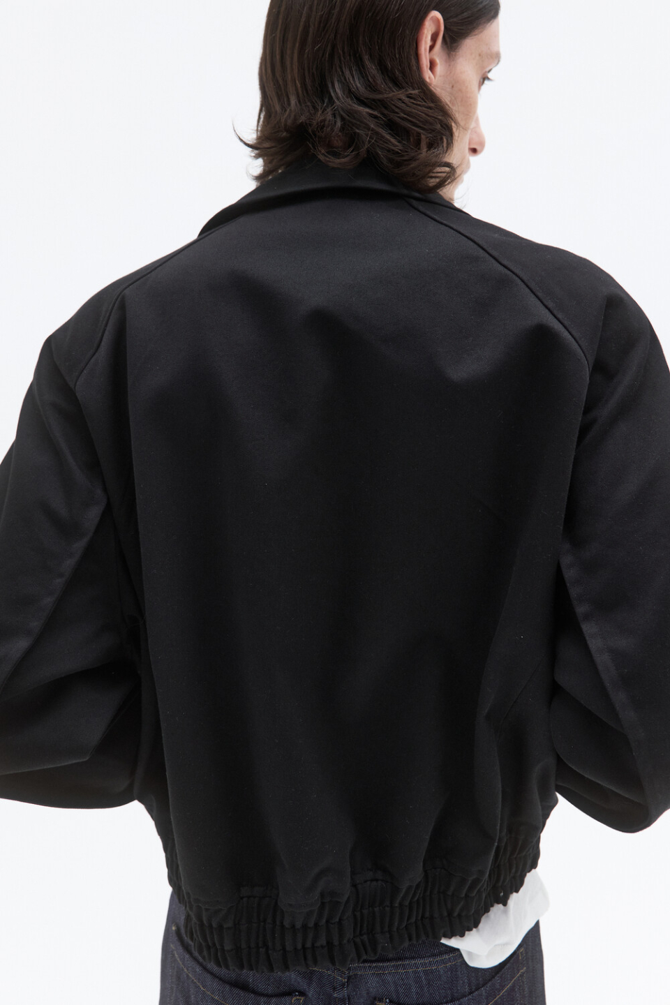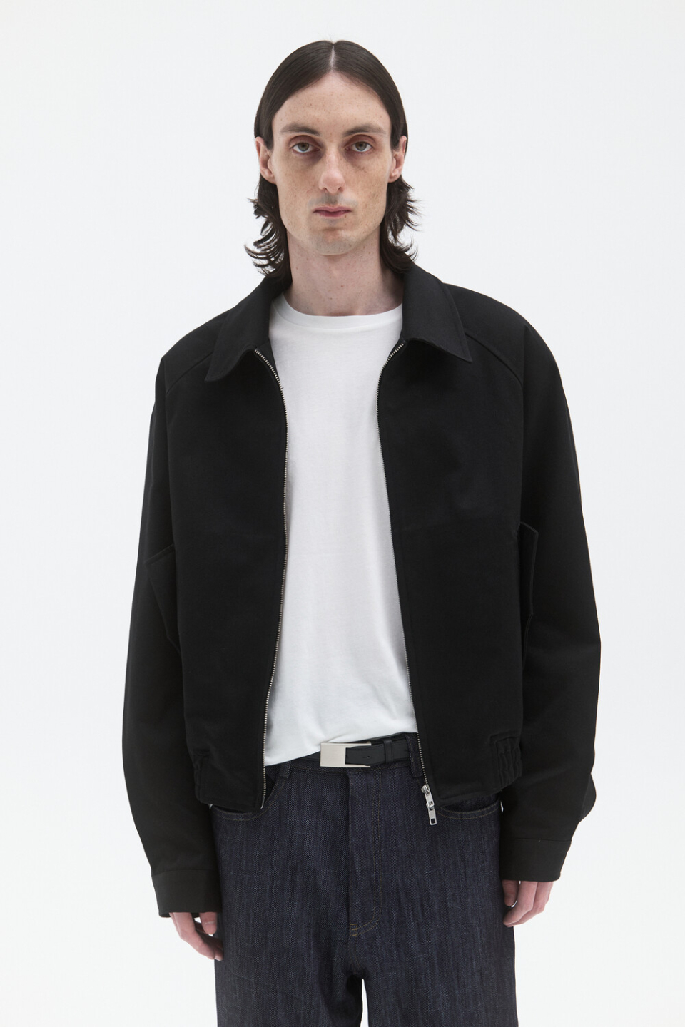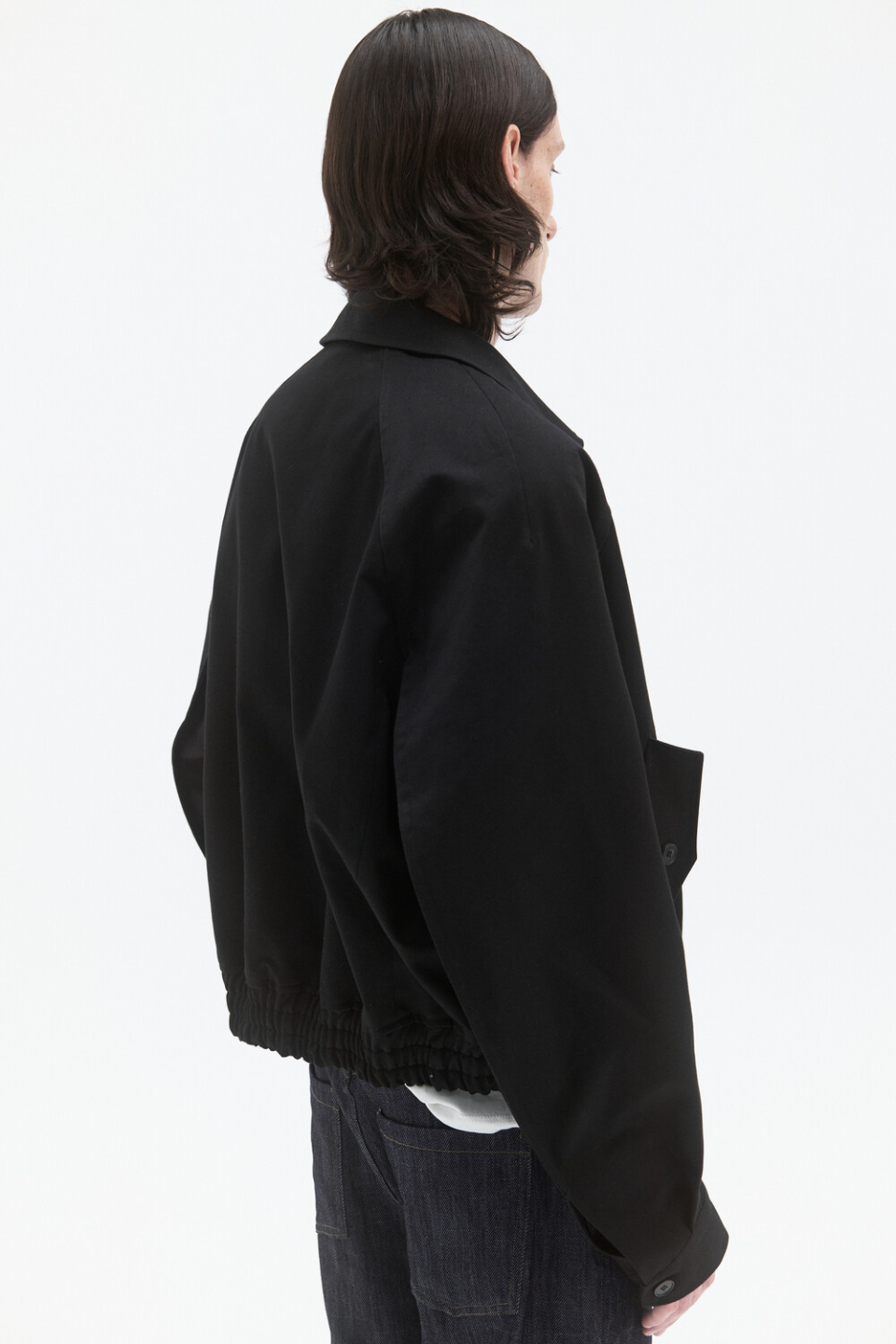 -어깨 실루엣과 크롭한 기장감이 돋보이는 코튼 블루종