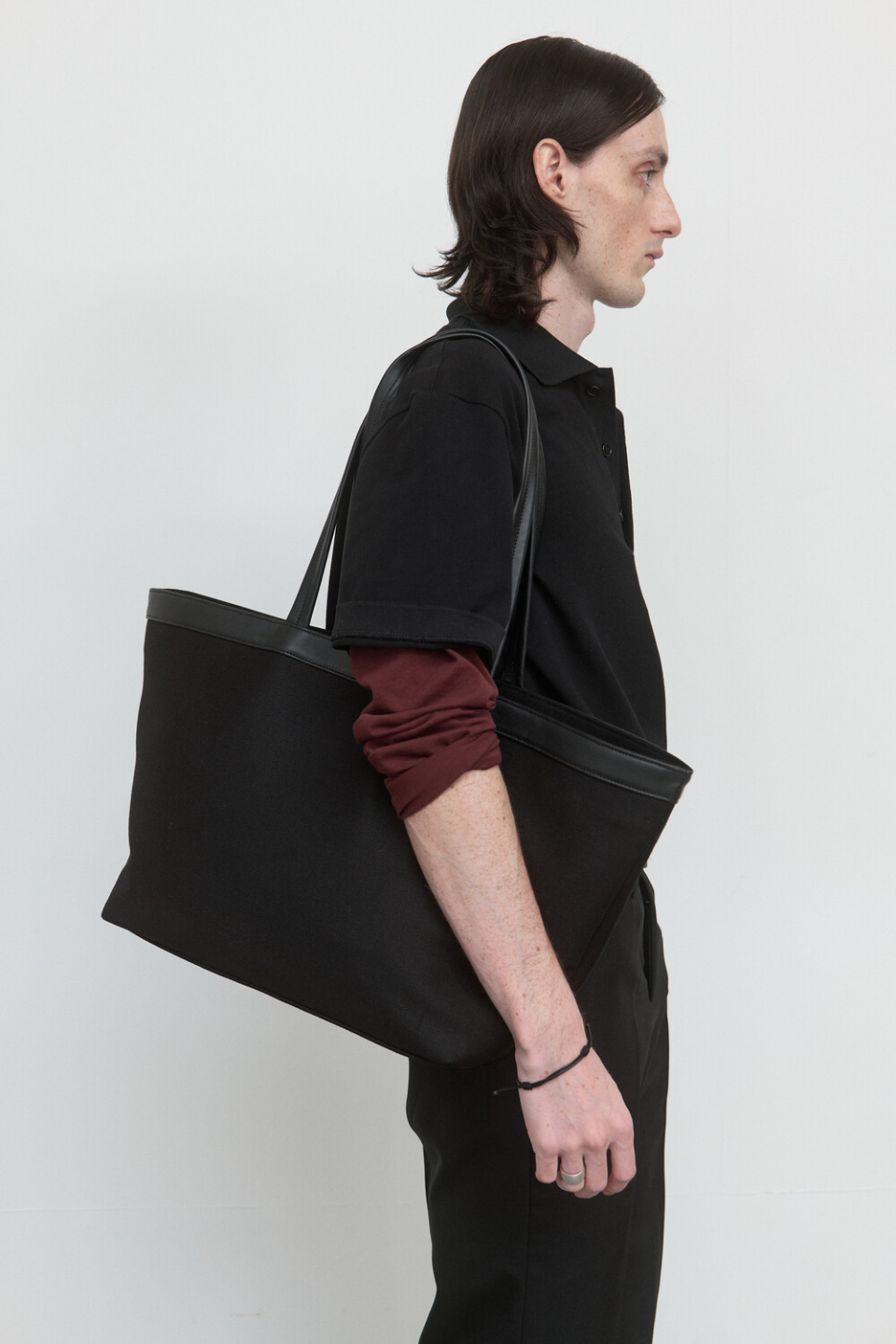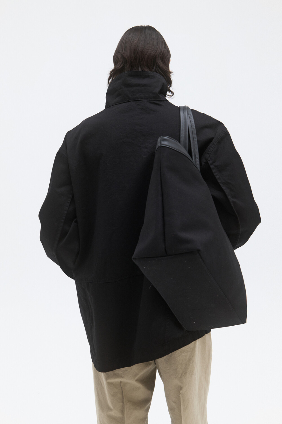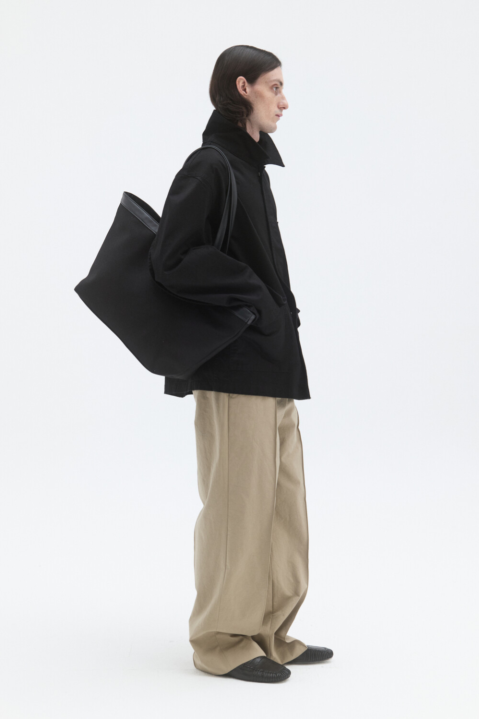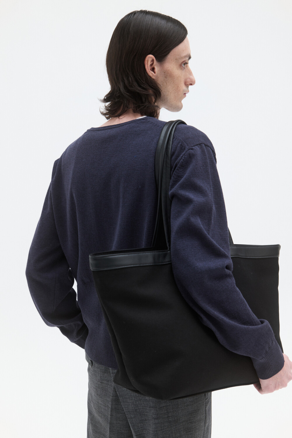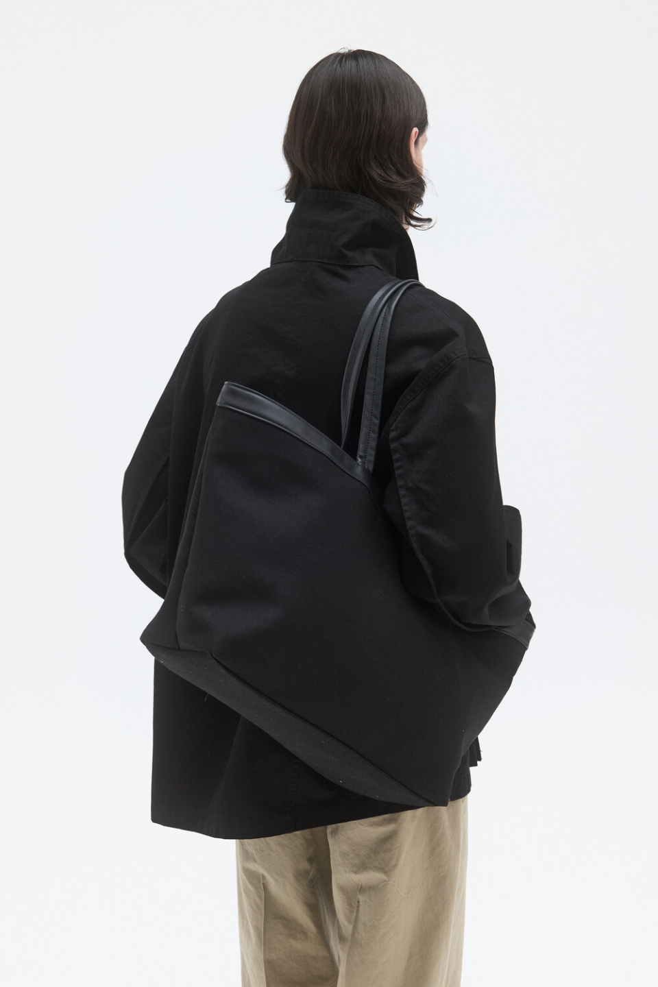 -매트한 내츄럴 타입 소가죽 트리밍과 두께감 있는 코튼 트윌소재가 믹스된 모던한 미감의 토트백