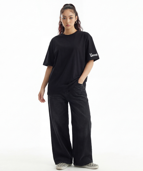 소매 스몰로고 어센틱 반팔 티셔츠 블랙