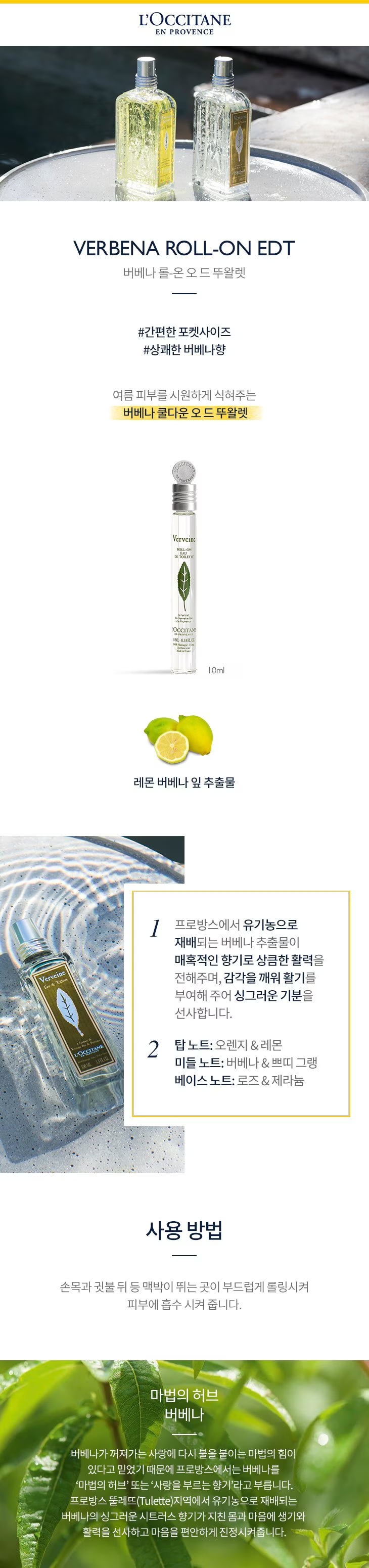 | 전성분 | 변성알코올,정제수,리모넨,향료,레몬버베나잎추출물(0.39513%),시트릭애씨드,소듐벤조에이트,시트랄,제라니올,헥실신나몰,시트로넬올,벤질벤조에이트,리날룰,벤질알코올 |