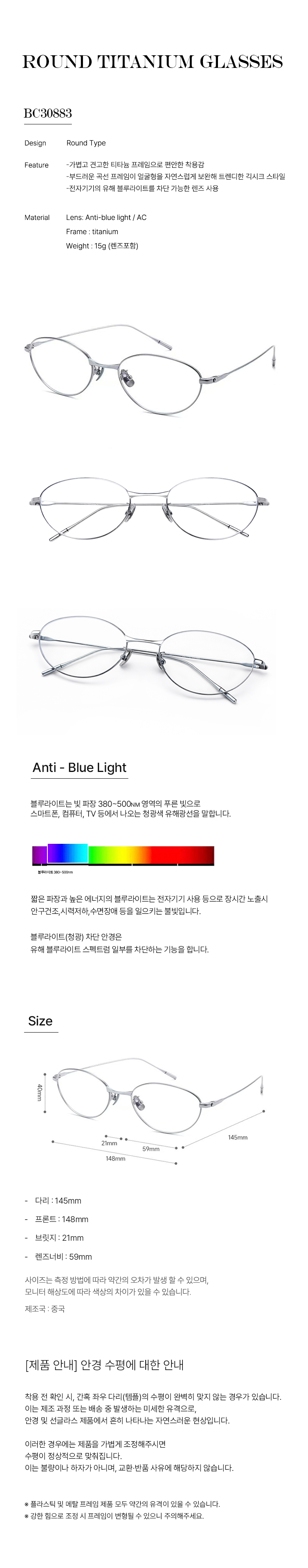 [블루라이트차단] 라운드 티타늄 안경 BC30883